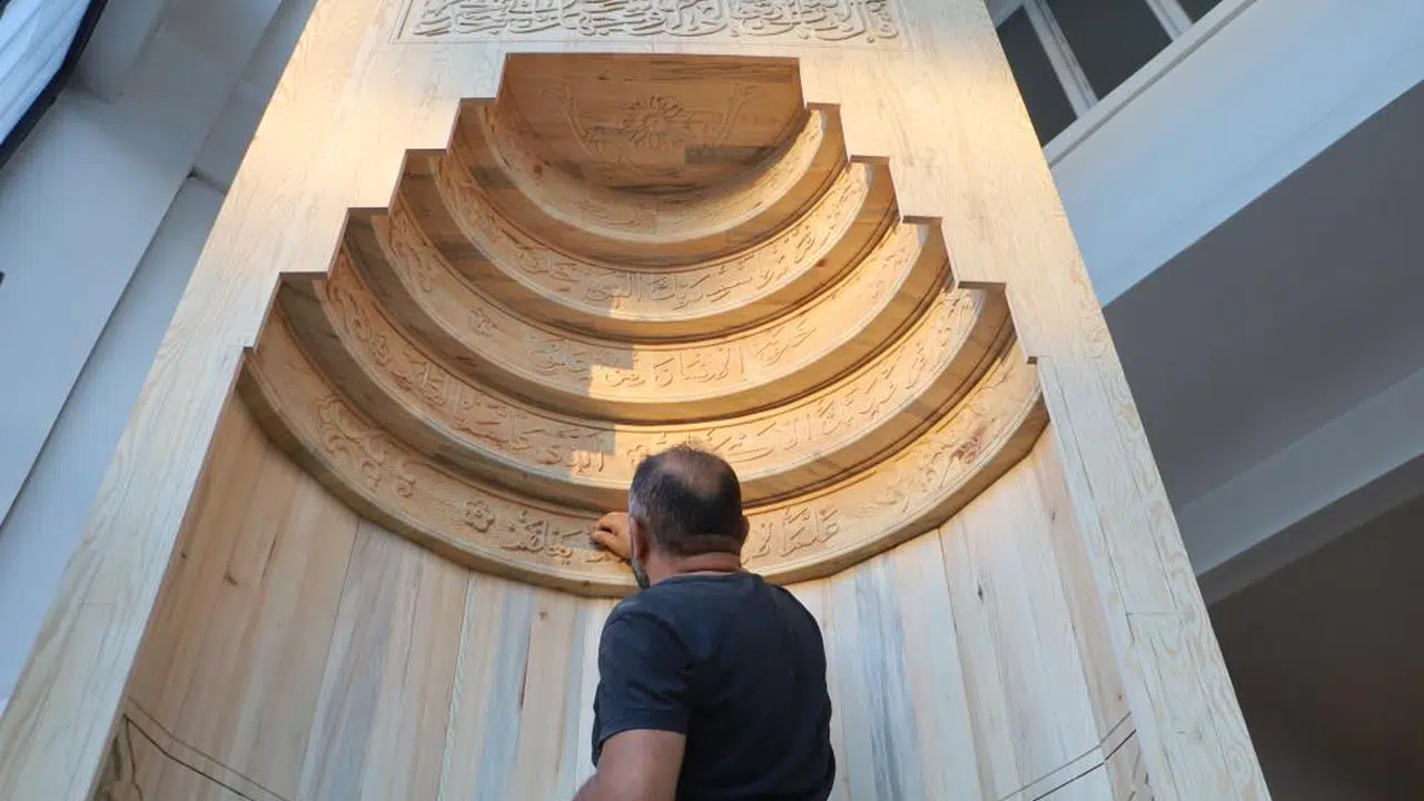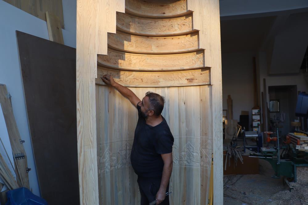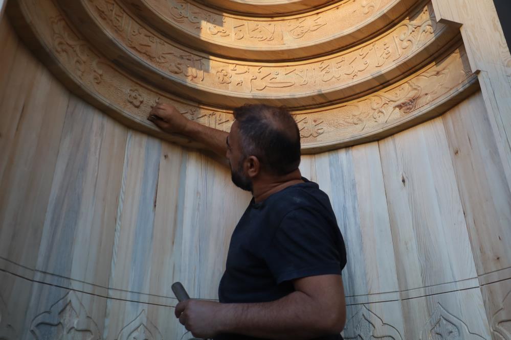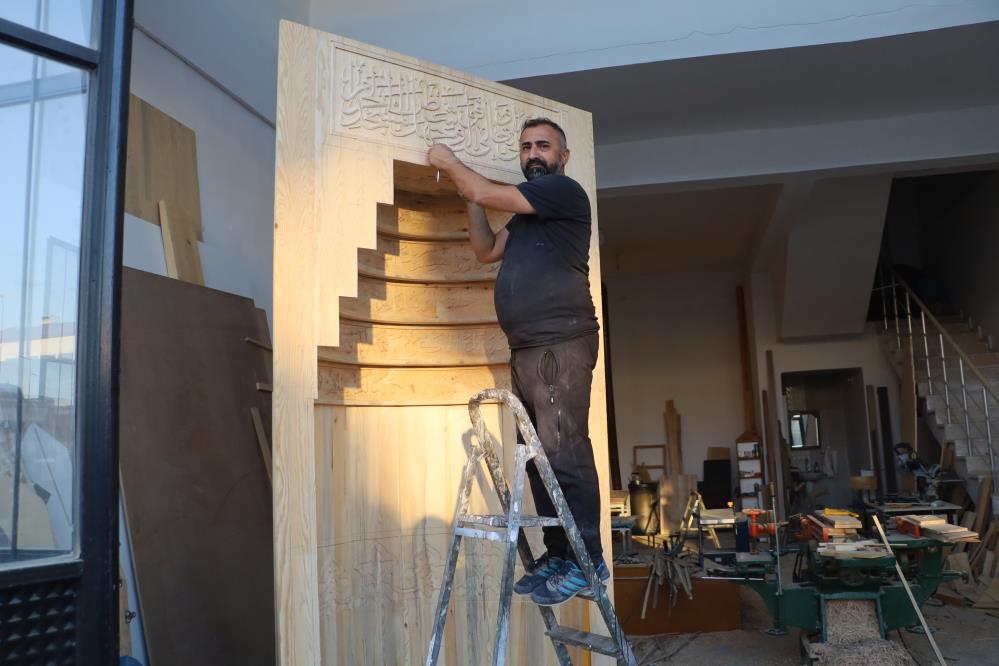Yaklaşık 20 yıldır ahşap oyma sanatıyla uğraşan Süleyman Daştan, CNC makinelerinin hızına karşı el işçiliğinin kıymetini ön plana çıkarıyor. Şu sıralar 3,5 metre yüksekliğinde ve 2,5 metre genişliğinde bir cami mihrabı üzerinde çalışan Daştan, ithal çam üzerine yazdığı Kur’an harfli yazıları ve desenleri tek tek işliyor.