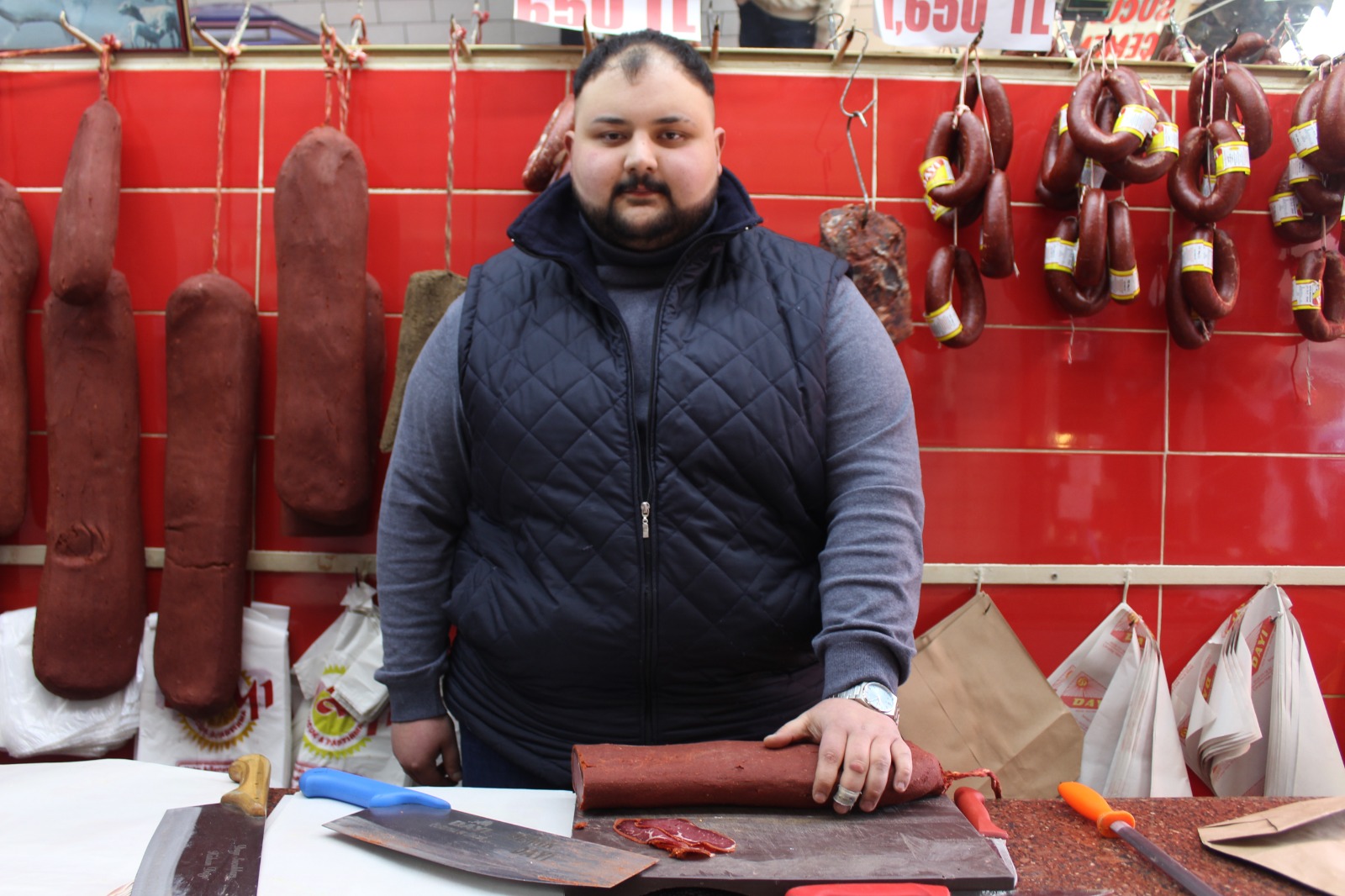 Sivas’ta 14 yıldır pastırma satışı yapan Sondemir Dayı, ailelerinin 1945 yılından bu yana pastırma, sucuk ve kavurma üretimiyle uğraştığını belirtti.