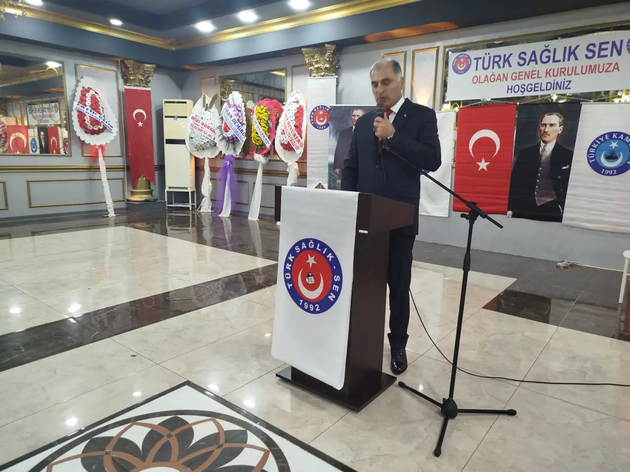 Türk Sağlık-Sen Sivas Şube Başkanı Dursun Özen, konuşmasına geçtiğimiz günlerde Azerbaycan’dan dönen askerlerimizi taşıyan uçağın düşmesi sonucu şehit olan kahraman askerlerimizi anarak başladı. Özen, “33 yıllık şanlı bir mücadelenin adı olan Türk Sağlık-Sen, bugün Türkiye genelinde her sosyal ve sağlık kurumunda temsilcisi bulunan güçlü bir sivil toplum örgütüdür” dedi.