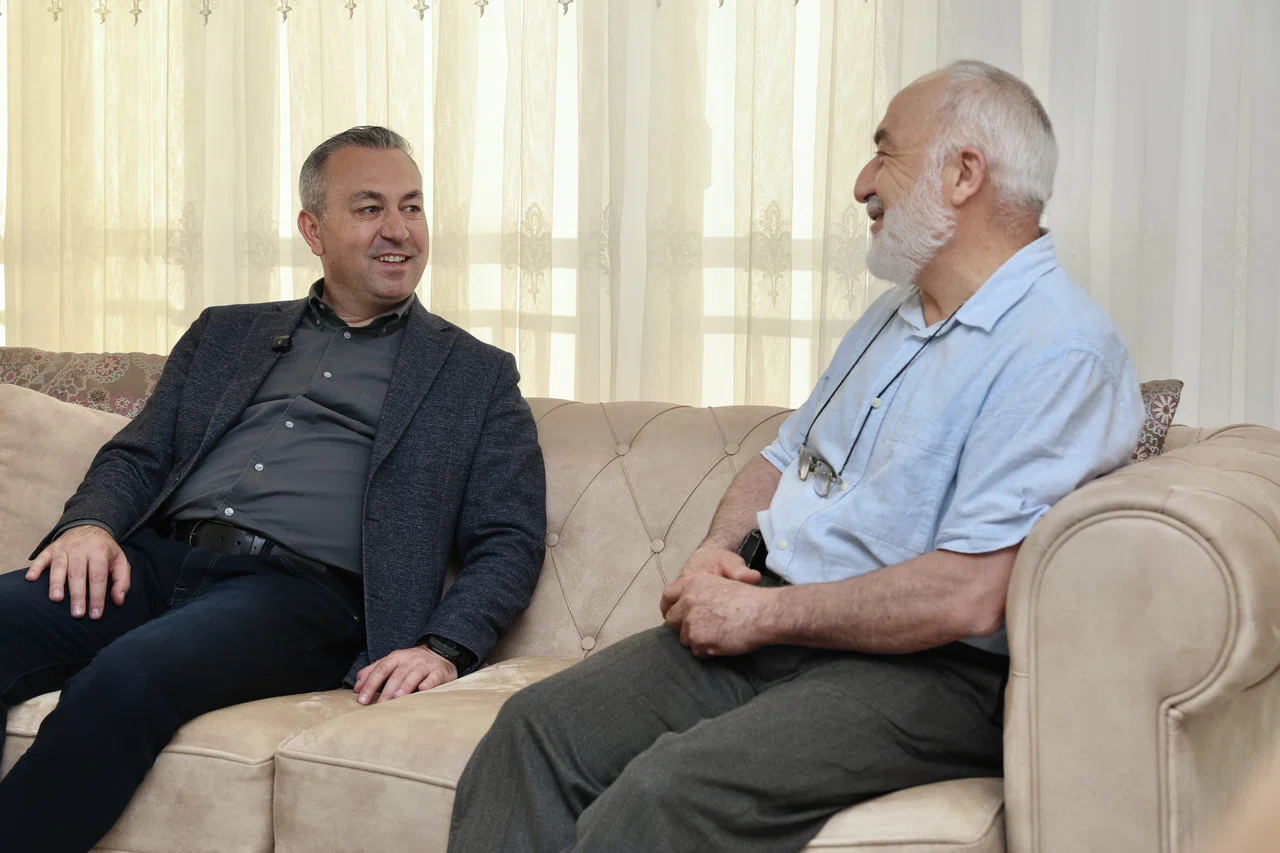 Kendi imkânlarıyla kaldırımda biriken yabani otları temizleyen ve yağmurla bozulan kaldırım taşlarını onaran Mehmet amcayı, Sivas Belediye Başkanı Dr. Adem Uzun evinde ziyaret etti.