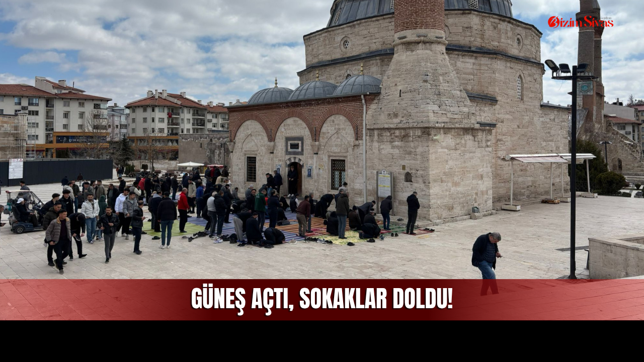 Sivas’ta uzun ve sert geçen kış mevsiminin ardından güneşin yüzünü göstermesiyle birlikte şehirde büyük bir hareketlilik başladı. Termometrelerin yükselmesiyle parkların ve caddelerin dolup taştığı Sivas’ta, bugün Cuma namazı saatiyle birlikte manevi bir yoğunluk yaşandı. Hafta içi her ne kadar iş ve okul telaşı olsa da, Cuma vaktinin gelmesiyle şehir adeta sessizliğe bürünürken cami çevrelerinde tam tersi bir insan seli oluştu.