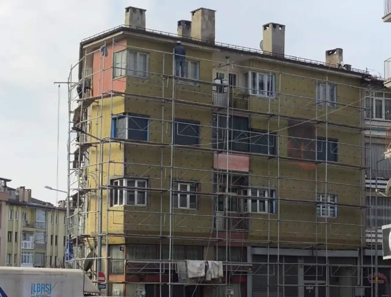 Sivas’ta iş güvenliği bir kez daha kâğıt üzerinde kaldı. Tarihi Behrampaşa Hamamı’nın arka kısmında bir binada yürütülen dış cephe çalışmasında, işçilerin hiçbir güvenlik önlemi olmadan iskelenin üzerinde çalıştığı görüldü. Çarşının ortasında, yaya trafiğinin yoğun olduğu bir noktada yapılan çalışmalarda ne iskelede file bulunuyor ne de alan çevresine güvenlik şeridi çekilmiş durumda.