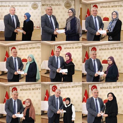 Sivas İl Müftülüğü Abdulvahhabi Gazi Yatılı Kız Kur’an Kursu, Hafız Mehmet Altuntaş İhramcızade Yatılı Erkek Kur’an Kursu ve Zeki Hayran Proje İmam Hatip Ortaokulu’nda eğitim gören 9’u kız, 7’si erkek toplam 16 öğrenci, 13 ay ve daha kısa sürede hafızlıklarını tamamladı. Başarı gösteren öğrenciler için İl Müftülüğü Toplantı Salonu’nda ödül töreni gerçekleştirildi.