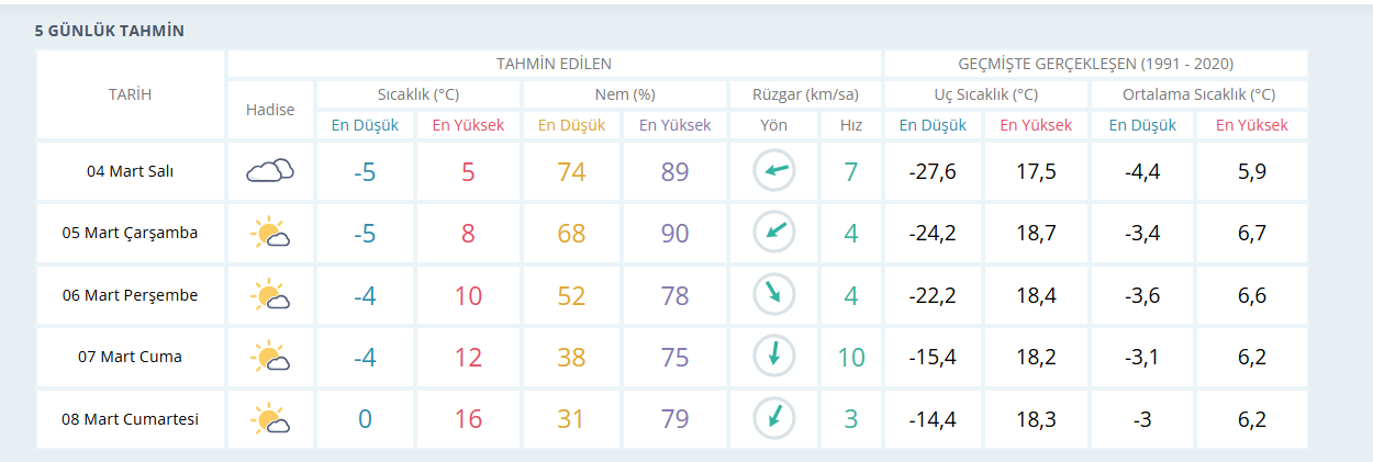 Önümüzdeki günlerde Sivas’ta yağış beklenmiyor. Güneşli ve ılıman hava, vatandaşlara dışarıda daha fazla vakit geçirme fırsatı sunacak. Ancak Sivas’ın sert iklimi göz önüne alındığında, Mart ayının sürprizlerine karşı hazırlıklı olunmalı. Ani rüzgarlar ve sıcaklık dalgalanmaları yaşanabilir. Bu nedenle hava tahminleri düzenli olarak takip edilmeli ve uygun kıyafet tercihleri yapılmalı.