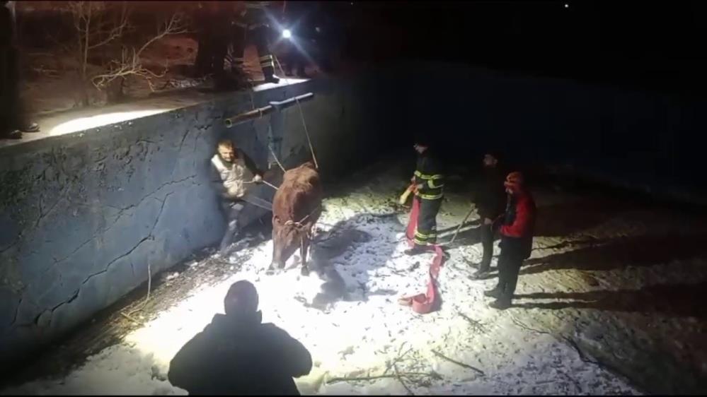 Sivas'ta sahibinin elinden kaçarak boş havuza düşen inek, AFAD ve itfaiye ekipleri tarafından kurtarıldı.