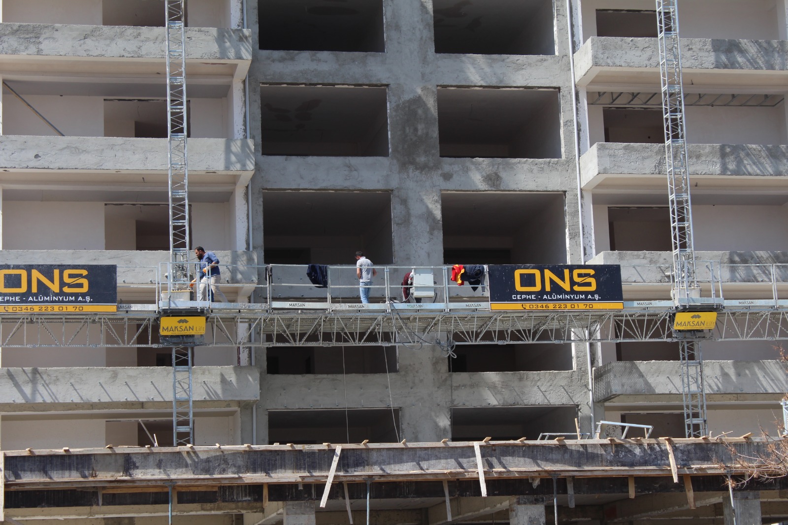 Sivas’ta inşaat firmaları, yaz sezonunun başlamasıyla birlikte çalışmalarını yoğunlaştırdı. Kent genelinde birçok şantiyede hummalı bir çalışma yürütülüyor. Ancak fotoğraflardan da görüldüğü gibi, işçilerin iskelelerde herhangi bir koruyucu ekipman (baret, emniyet kemeri vb.) kullanmadan çalıştığı görülüyor. Bu durum, iş kazası riskini ciddi şekilde artırıyor.