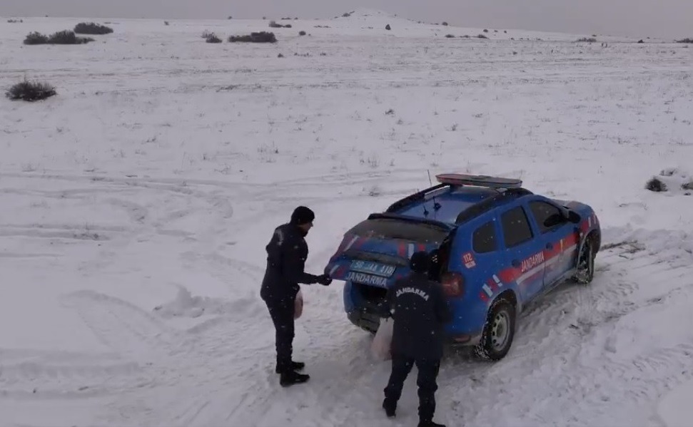 Gemerek ilçesinde, İl Jandarma Komutanlığı'na bağlı ekipler, il genelinde etkisini gösteren ağır kış şartları nedeniyle açlık tehlikesi ile karşı karşıya kalan yaban hayvanlarının beslenmesini sağlamak amacıyla harekete geçti.