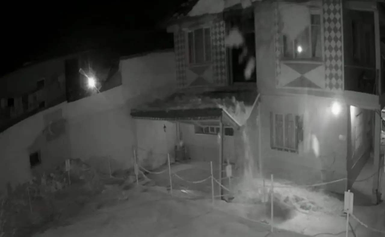 Bahçede kimsenin bulunmadığı bir anda gerçekleşen çökme anı, evin güvenlik kamerası tarafından anbean kayıt altına alındı. Görüntülerde, çatının üst kısmındaki karların aniden bir çığ gibi hareketlendiği ve sundurmanın üzerine düştüğü görülüyor. Büyük bir basınçla aşağı inen karlar, altındaki yapıyı adeta kağıt gibi ezerek yerle bir ediyor.