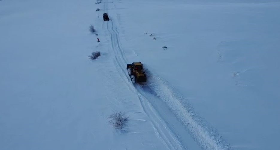 Yoğun kar yağışının yaşandığı Gürün ilçesinde kar kalınlığı yer yer 60 santimetreyi buldu. Kar nedeniyle kapanan ilçeye bağlı Kavak köyünde iş makinaları yoğun mesai harcadı. Gece gündüz demeden karla mücadele eden ekiplerin çalışmaları dron ile havadan görüntülendi. Sivas İl Özel İdaresi, görüntüleri sosyal medya hesabında şu ifadelerle paylaştı: