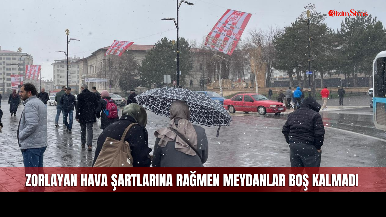 Olumsuz hava koşullarına rağmen kent meydanında yaşanan yoğunluk dikkatlerden kaçmadı. Hafta sonunu dışarıda geçirmek isteyen Sivaslılar, kar yağışına rağmen meydanı doldurdu.