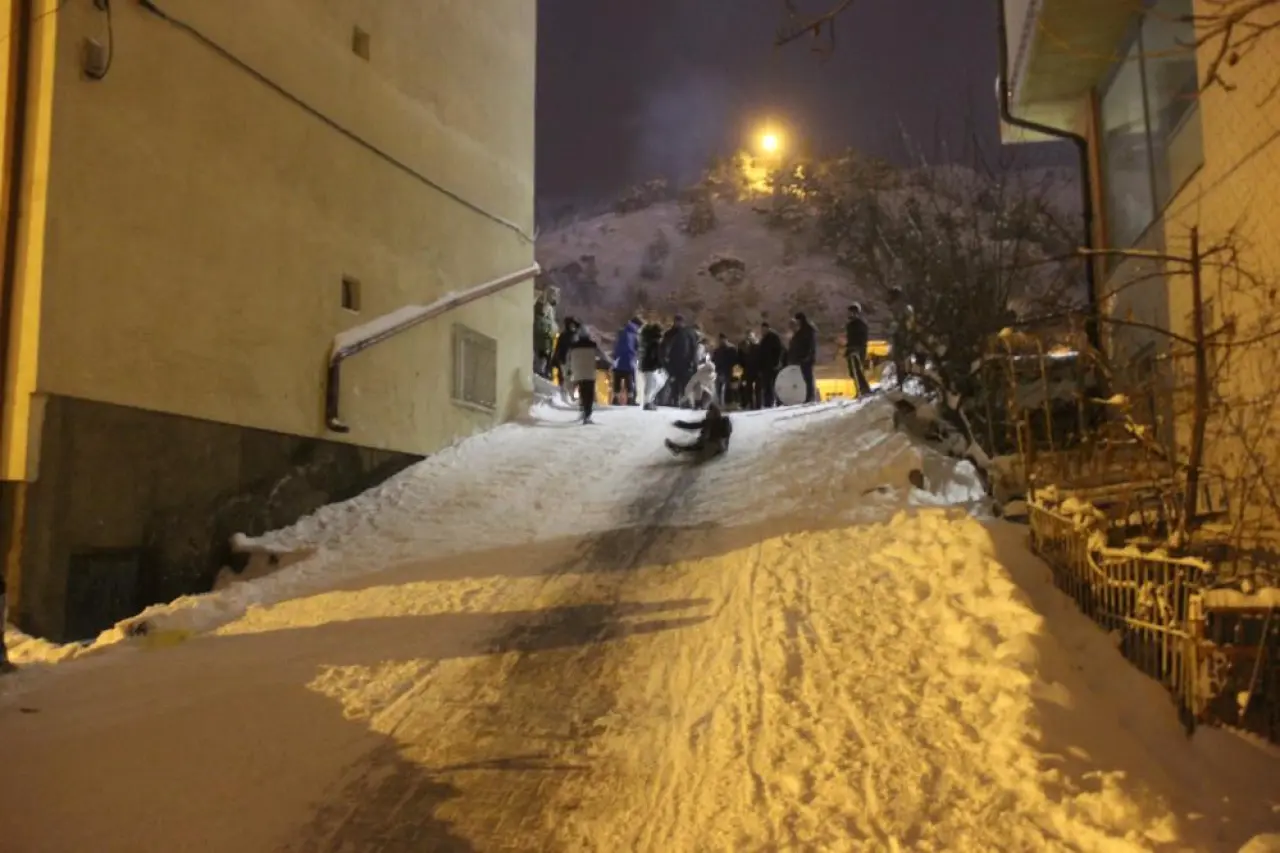 Eğlencenin dozunun arttığı saatlerde vatandaşların yaratıcılığı ön plana çıktı. Profesyonel kayak takımları yerine evlerinden getirdikleri tepsileri, plastik şişeleri ve naylonları kullanan mahalle sakinleri, yokuş aşağı hızla kayarak karın tadını çıkardı. Sadece çocukların değil, yetişkinlerin de bu heyecana ortak olması dikkat çekti. Kahkahaların gece karanlığında yankılandığı Zara’da, plastik şişelerin üzerinde dengede durmaya çalışanların mücadelesi izleyenlere keyifli anlar yaşattı.