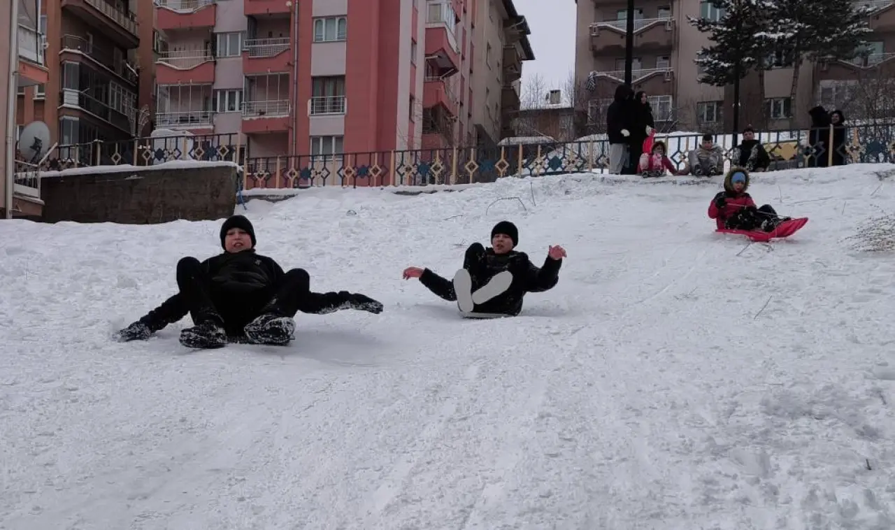 Kayak tesislerinin şehir merkezine uzak ve maliyetli olması nedeniyle öğrenciler, kar eğlencesini mahallelerinde yaşadı. Arkadaşlarıyla birlikte kendi pistlerini oluşturan çocuklar, gün boyu süren kayma keyfiyle karne tatilini dolu dolu geçirdi. Kahkahaların eksik olmadığı sokaklarda, kar topu oynayan ve fotoğraf çektiren çocuklar da dikkat çekti.