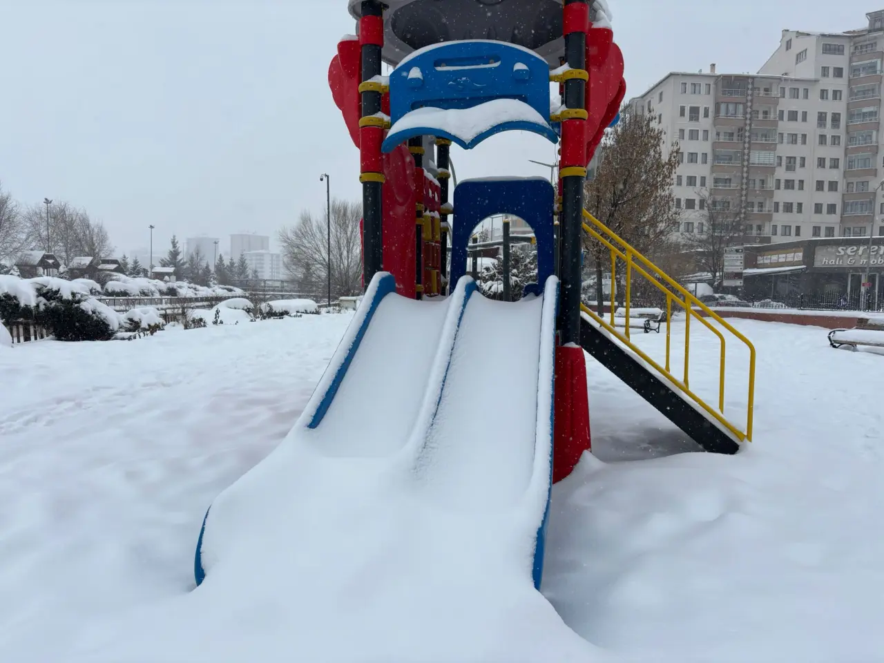 Yaz aylarında su sesleri ve çocuk neşesiyle dolup taşan Aksu Park, kışın gelişiyle bambaşka bir kimliğe büründü. Şimdilerde sadece birkaç kişinin geçiş güzergahı olarak kullandığı park, sessizliği ve beyaz örtüsüyle huzur veren bir görüntü sergiliyor. Işıkların karla birleştiği o anlar, Sivas’taki kışın zorlu olduğu kadar büyüleyici yüzünü de bir kez daha hatırlatıyor.