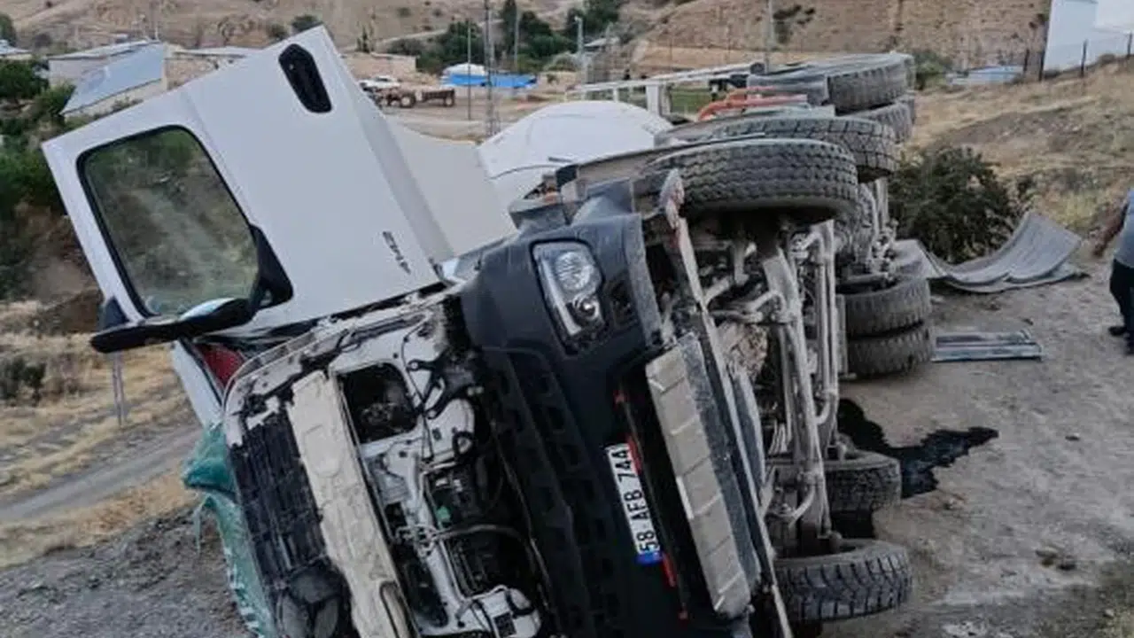 Sivas’ın Gürün ilçesinde meydana gelen trafik kazası korku dolu anlara sahne oldu. İlçeye bağlı Tepecik köyü yakınlarında seyir halinde olan 58 AFB 744 plakalı beton mikseri, sürücüsünün direksiyon hakimiyetini kaybetmesi sonucu yoldan çıkarak takla attı.