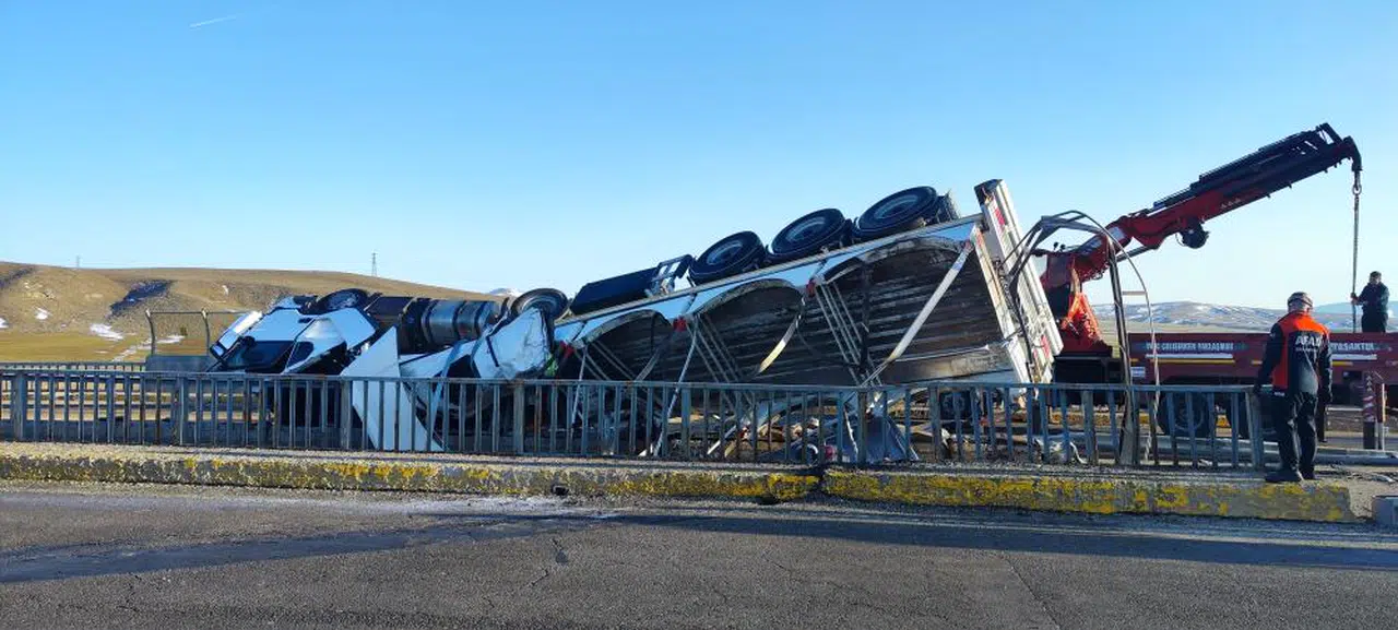 Edinilen bilgiye göre, kaza Sivas-Kayseri karayolu Şarkışla ilçesi Kömürkaya mevkiinde meydana geldi. Gemerek ilçesinden hareket eden Fatih Bayırlı idaresindeki süt yüklü tır, Şarkışla ilçesine seyir halindeyken sürücünün direksiyon hakimiyetini kaybetmesi sonucu devrilerek köprünün korkuluklarında asılı kaldı.