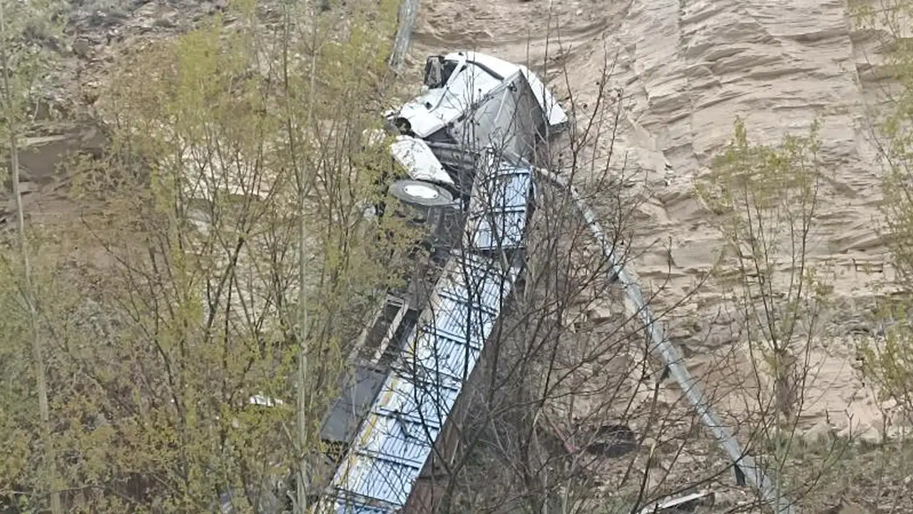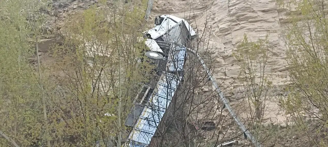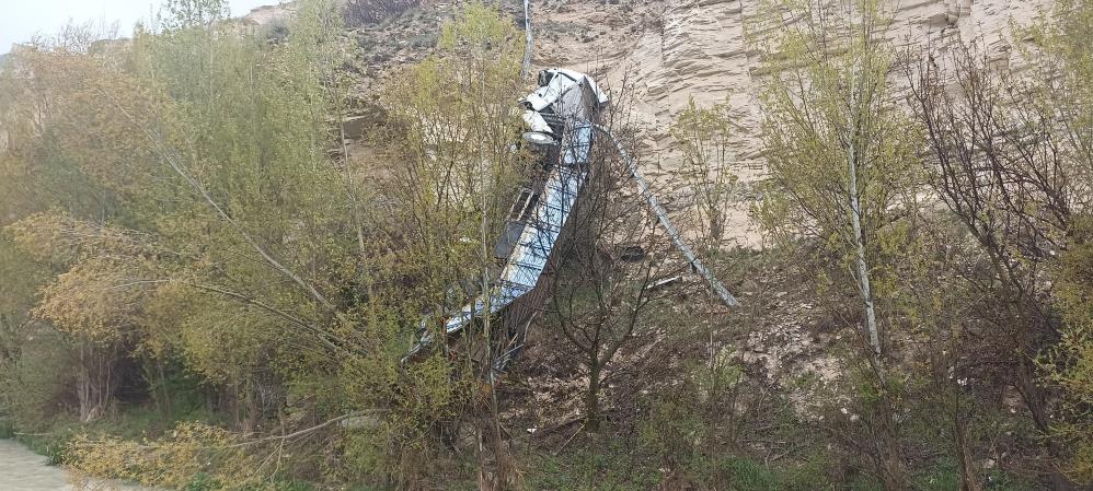 Sivas'ta metrelerce yükseklikten uçuruma düşen tırın sürücüsü kazayı hafif sıyrıklarla atlattı.