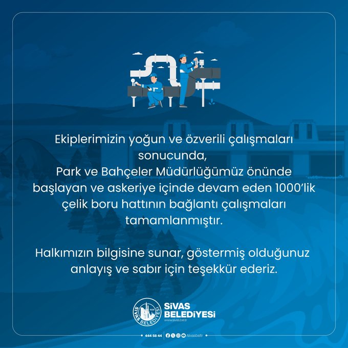Belediye tarafından yapılan açıklamada, Park ve Bahçeler Müdürlüğü önünde başlayan ve askeriye içinde devam eden 1000’lik çelik boru hattının bağlantı işlemlerinin ekiplerin yoğun ve özverili çalışmaları sonucunda bitirildiği belirtildi.