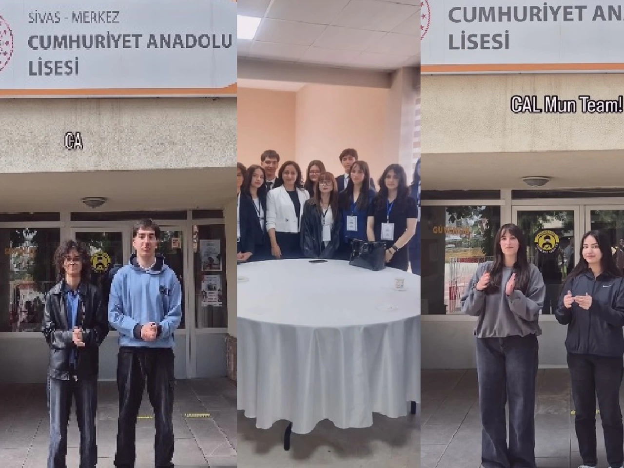 Sivas Cumhuriyet Anadolu Lisesi (CAL), öğrencilerinin elde ettiği başarılarla adından söz ettirmeye devam ediyor. Okulun "CAL MUN Team" adını taşıyan Model Birleşmiş Milletler takımı, geçtiğimiz Cuma günü düzenlenen ve Sivas'ta bir ilk olma özelliği taşıyan MUN Programı'nda okullarını başarıyla temsil etti. Lisenin sosyal medya hesabından yapılan "CAL MUN Team rocks!" (CAL MUN Takımı Harika!) başlıklı paylaşım, bu önemli başarıyı Sivas kamuoyu ile paylaştı.