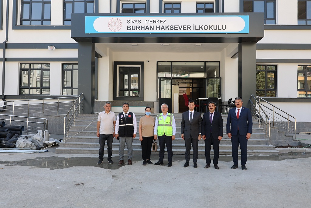 Sivas Valisi Yılmaz Şimşek, Millî Eğitim Müdürü Fatih Erdoğan ve Çevre Şehircilik ve İklim Değişikliği İl Müdürü Mustafa Doğan ile birlikte Kaleardı Mahallesi'nde Hayırsever Burhan Haksever tarafından yaptırılan 12 derslikli ilkokul inşaatında incelemelerde bulundu.