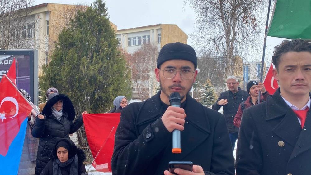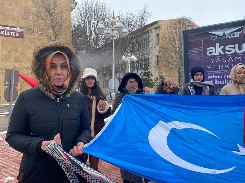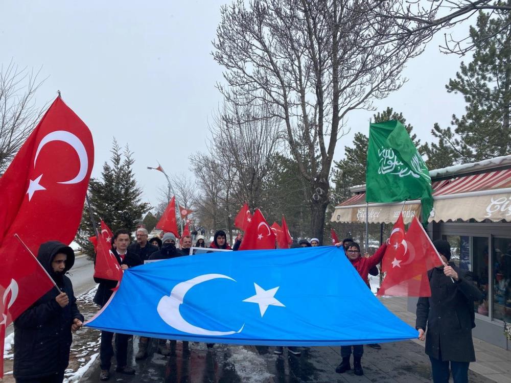 Sivas Cumhuriyet Üniversitesi kampüsünde Çin'in Uygur Türklerine uyguladığı baskıları protesto etmek amacıyla yürüyüş düzenlendi.