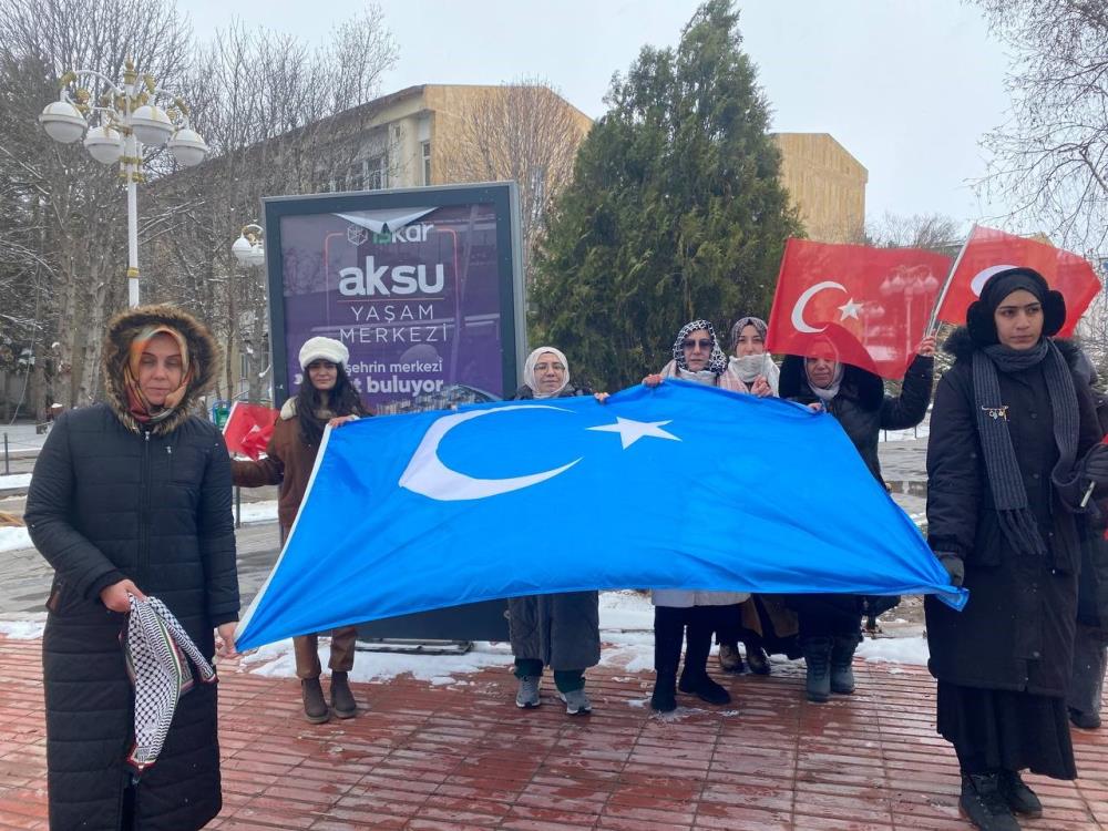 Milyonlarca kardeşimiz toplama kamplarında zorla alıkonulmakta, kültürel kimliklerinden koparılmakta, inanç ve ifade özgürlükleri ellerinden alınmaktadır. Bizler bu zulmü katiyen kabul etmiyoruz ve tüm vicdan sahibi insanları ses çıkarmaya davet ediyoruz" dedi.