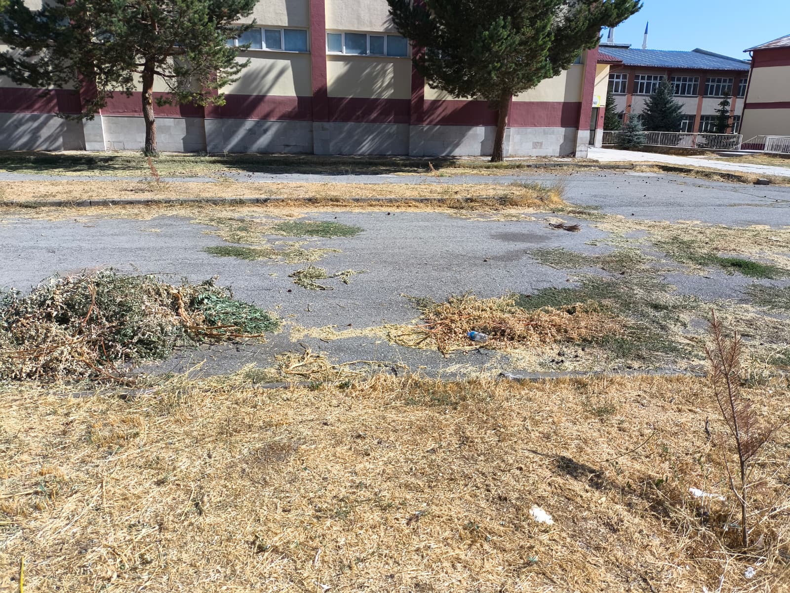 Okul bahçesinde kuruyan otlar, kırılmış dallar ve düzensiz alanlar göze çarparken, bu durum eğitim yuvasının görüntüsüne gölge düşürdü. Veliler, okulların bu haliyle öğrencileri karşılamaya hazır olmadığını belirterek düzenlemelerin acilen yapılması gerektiğini ifade etti.