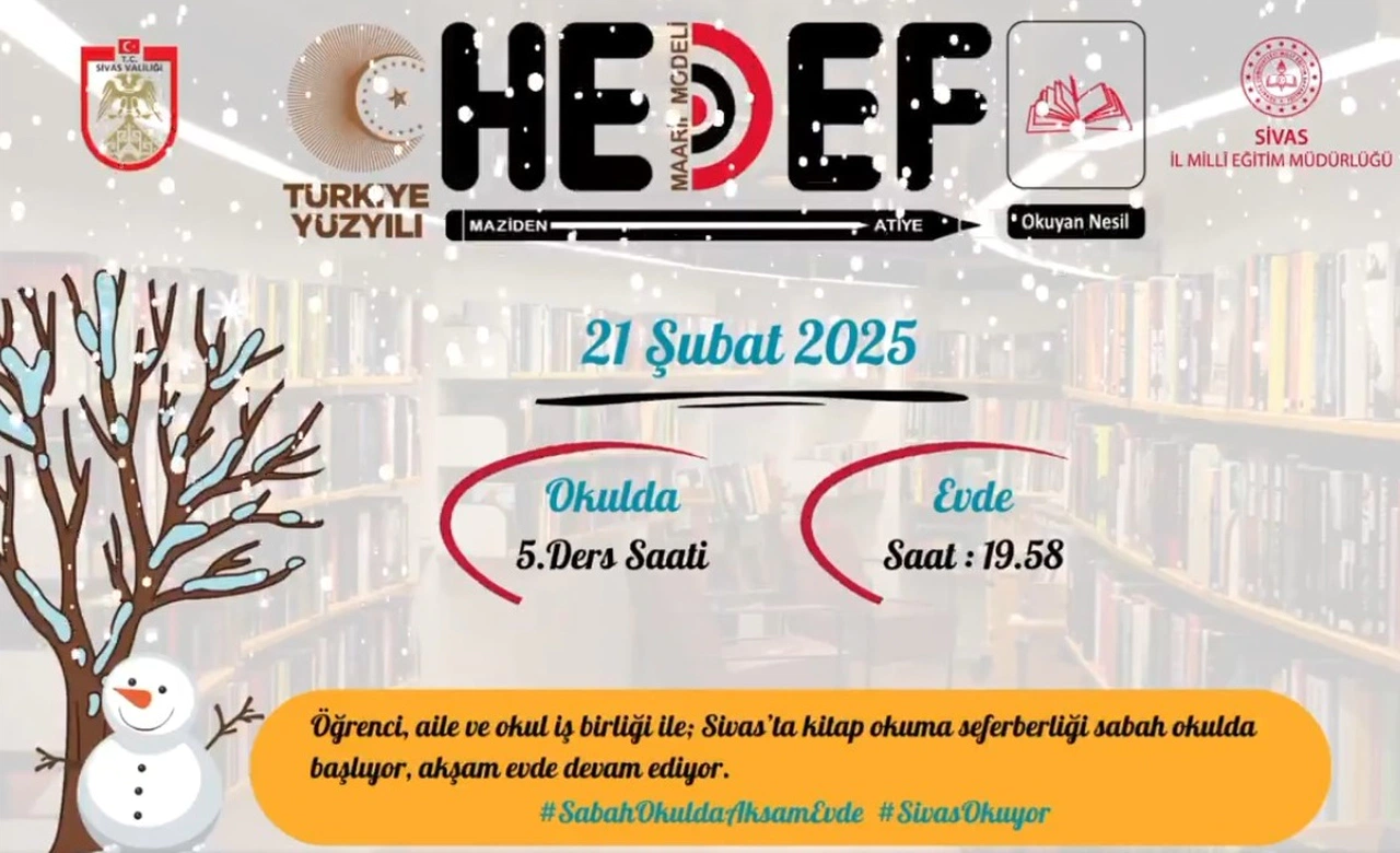 Sivas'ta bugün önemli bir etkinlik gerçekleştiriliyor: Okuma Seferberliği! Öğrenci, aile ve okul iş birliğiyle düzenlenen bu özel etkinlik, Maarif Modeli HEDEF programı kapsamında hayata geçiriliyor.