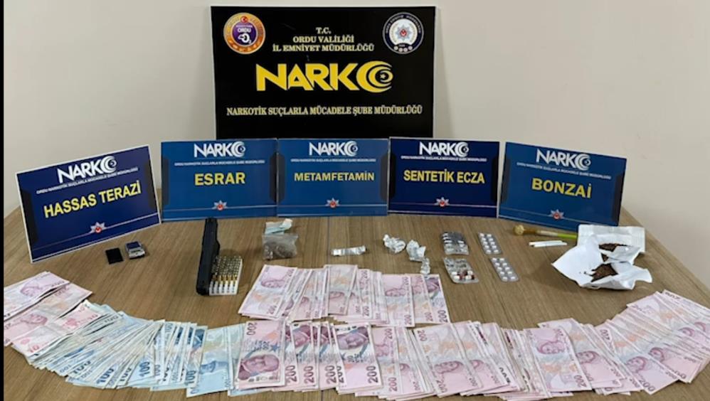 Operasyonda yapılan aramalarda dikkat çeken miktarlarda uyuşturucu ve suç unsurları ele geçirildi. Toplamda 111,35 gram bonzai, 64,13 gram metamfetamin, 104 adet sentetik ecza hap, 6 adet ecstasy hap, 1,67 gram esrar ile 2 adet hassas terazi bulundu. Ayrıca suçtan elde edildiği değerlendirilen 35 bin 30 TL nakit para, 1 adet ruhsatsız tabanca ve 38 adet fişek de ele geçirilenler arasında yer aldı.