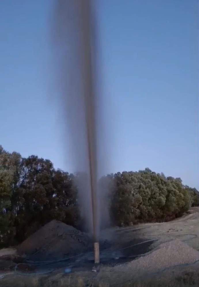 Sivas'ın Suşehri ilçesinde Emre Keleş isimli çiftçi, ilçe merkezinde yapımına başladığı ahırda kullanılmak üzere su bulmak için su sondajı yaptırdı.