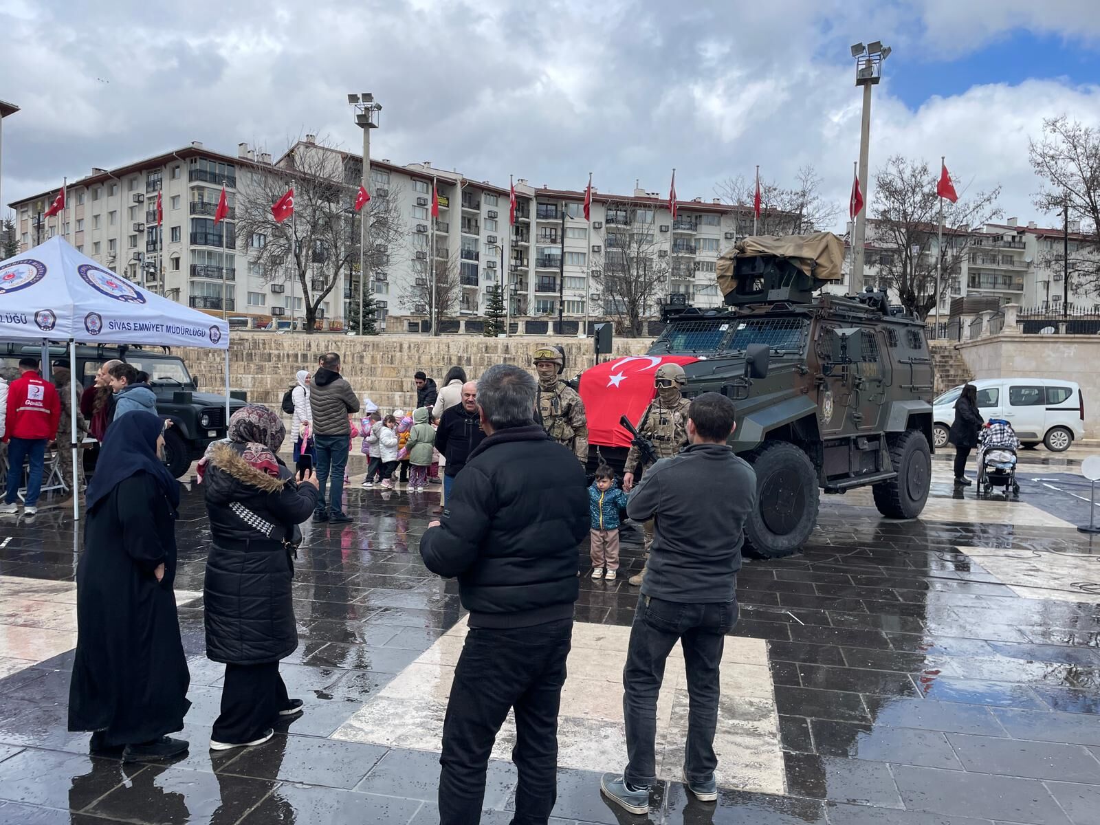 Sivas’ta Polis Haftası kapsamında düzenlenen etkinliklerde, kent meydanında görev alan polis özel harekat ekipleri vatandaşların ilgi odağı oldu. Program süresince meydanda toplanan kalabalık, ekipleri yakından görmek için alana akın etti.