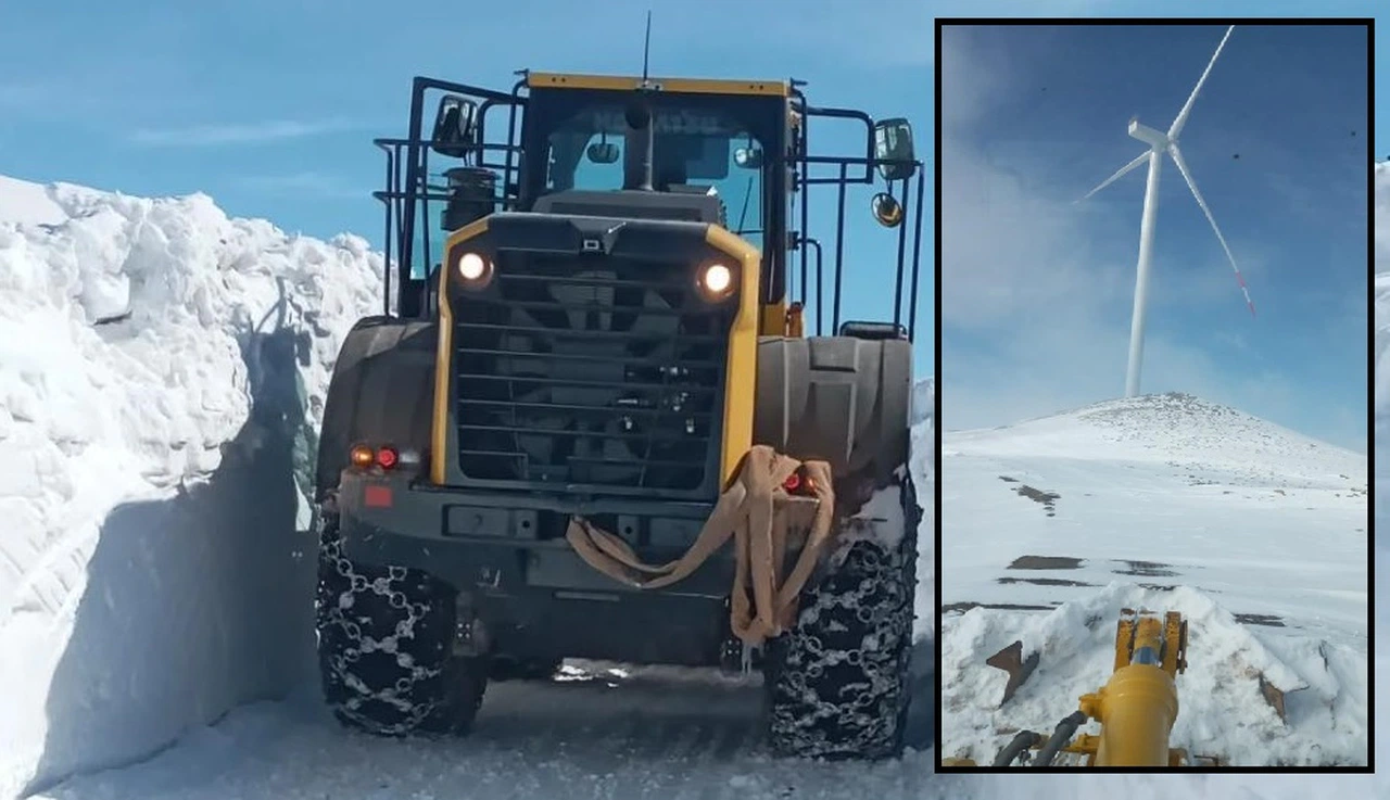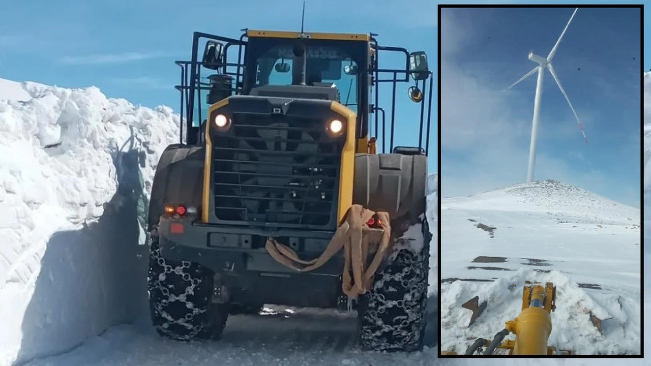 Malatya’nın Arapgir ile Sivas’ın Divriği ilçesi aralığında etkili olan kar yer yer 2 metreyi geçerken, Sarı Çiçek yaylası mevkiine yerleştirilmesi planlanan rüzgar gülleri için zorlu bir mücadele veriliyor.