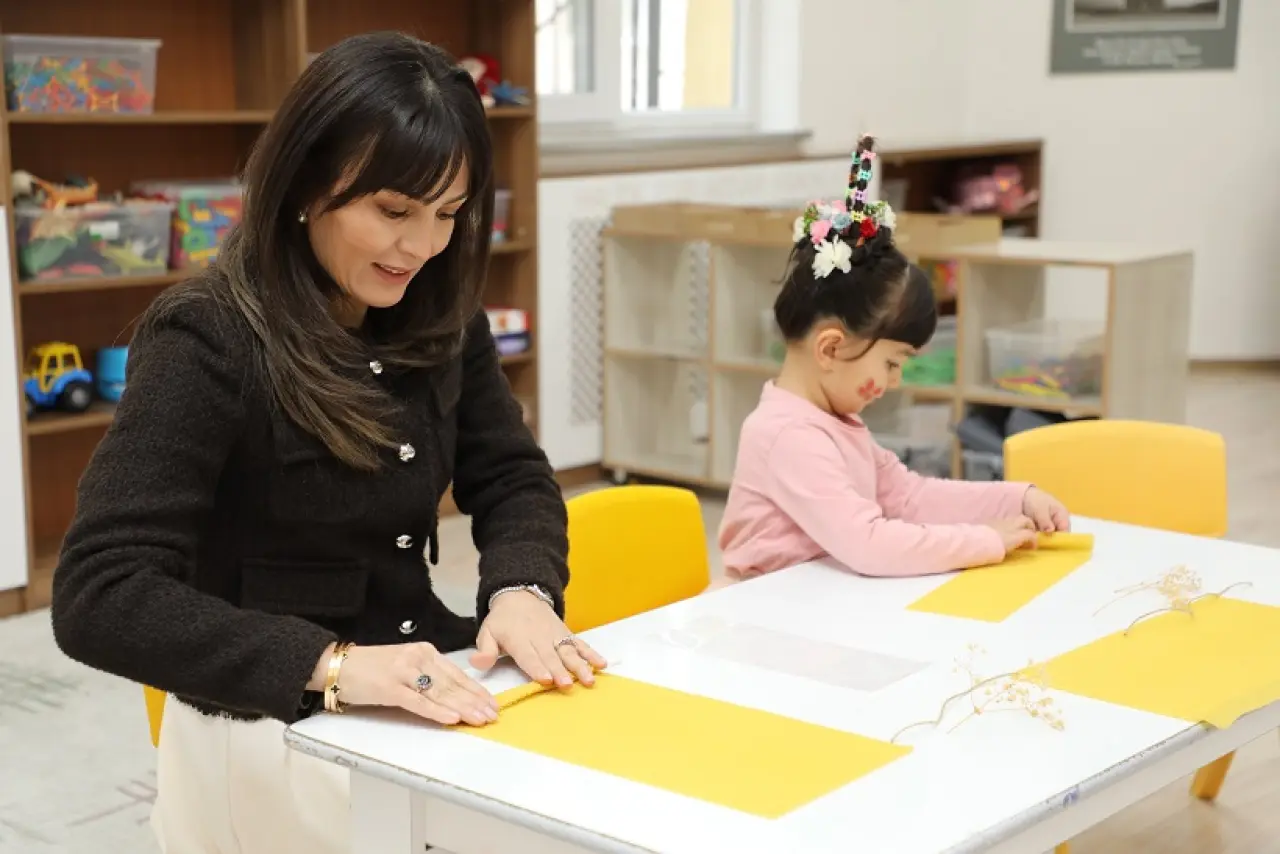 Program kapsamında sınıfları da gezen Hanımefendi Şimşek, yeni yıl için hediye hazırlayan çocuklara eşlik ederek onların çalışmalarını ilgiyle inceledi. Miniklerin heyecanı ve mutluluğu, etkinliğe renkli anlar kattı.