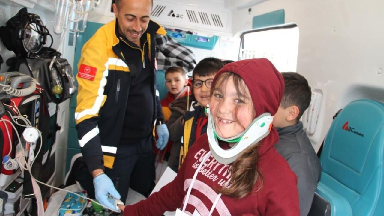 Etkinliğin en dikkat çeken bölümlerinden biri ise 112 sağlık ekiplerinin gerçekleştirdiği uygulamalı tanıtım oldu. Ambulans içerisinde kullanılan tıbbi cihazlar öğrencilere tek tek gösterilirken, acil durumlarda yapılan müdahaleler hakkında detaylı bilgiler paylaşıldı. Öğrenciler, sağlık ekiplerinin kullandığı ekipmanları yakından inceleme fırsatı buldu.