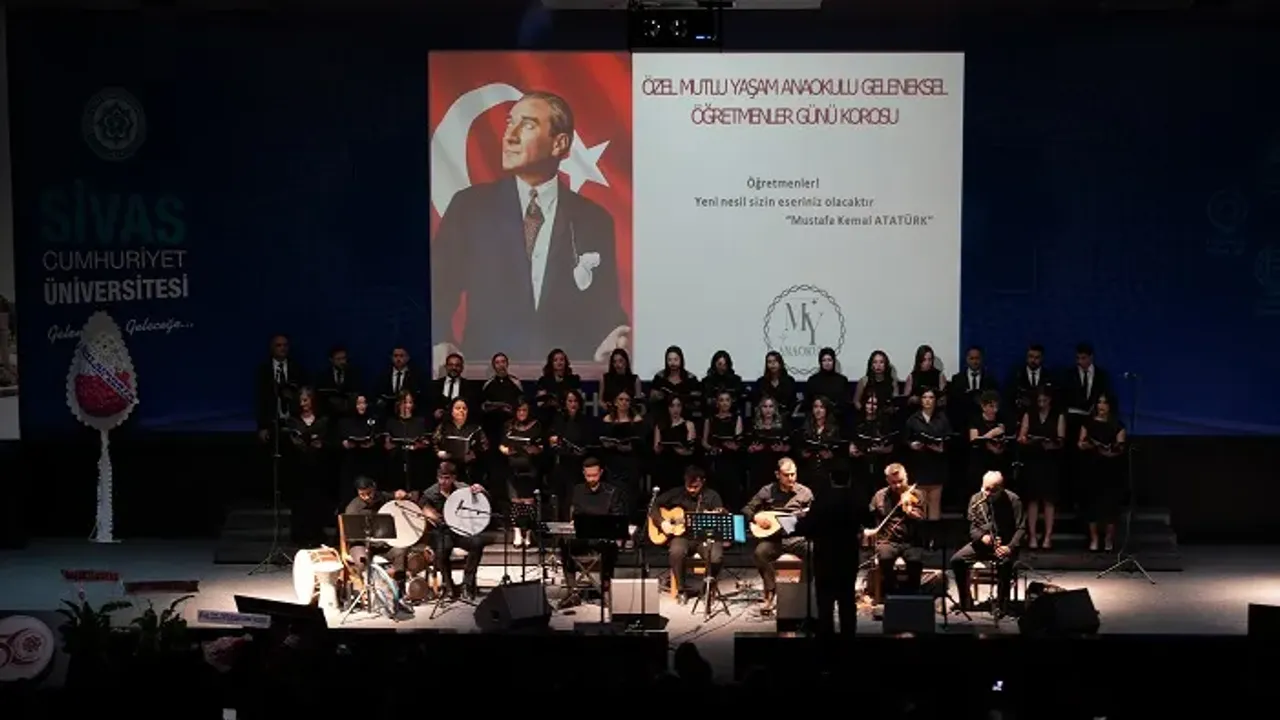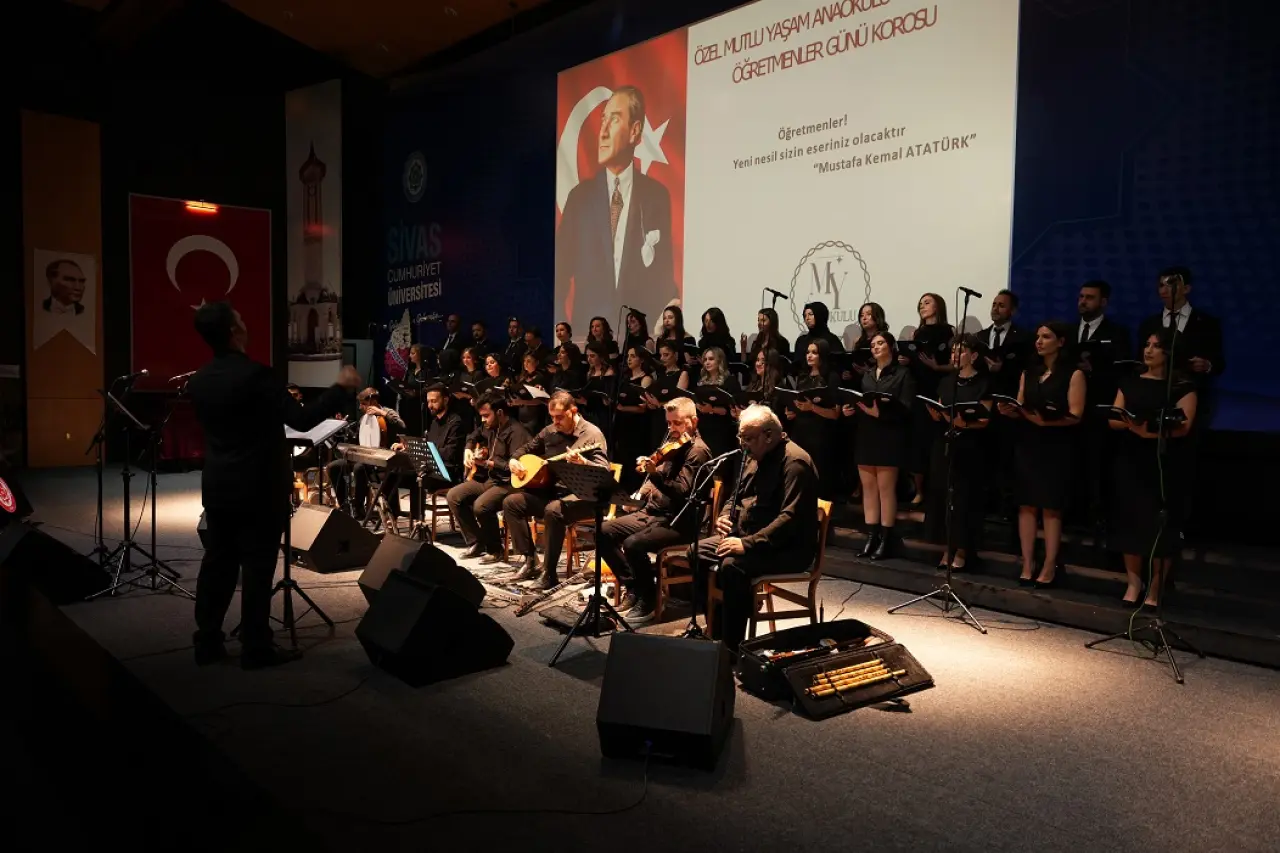 Sivas’ta 24 Kasım Öğretmenler Günü, bu yıl anlamlı bir etkinliğe sahne oldu. Bir anaokulunda görev yapan öğretmenler ile velilerin bir araya gelmesiyle kurulan koro, özel bir konser programıyla izleyenlere unutulmaz bir gece yaşattı. Cumhuriyet Üniversitesi 100 Yıl Kültür Merkezi’nde düzenlenen etkinlik, saygı duruşunun ardından İstiklal Marşı’nın okunmasıyla başladı.
