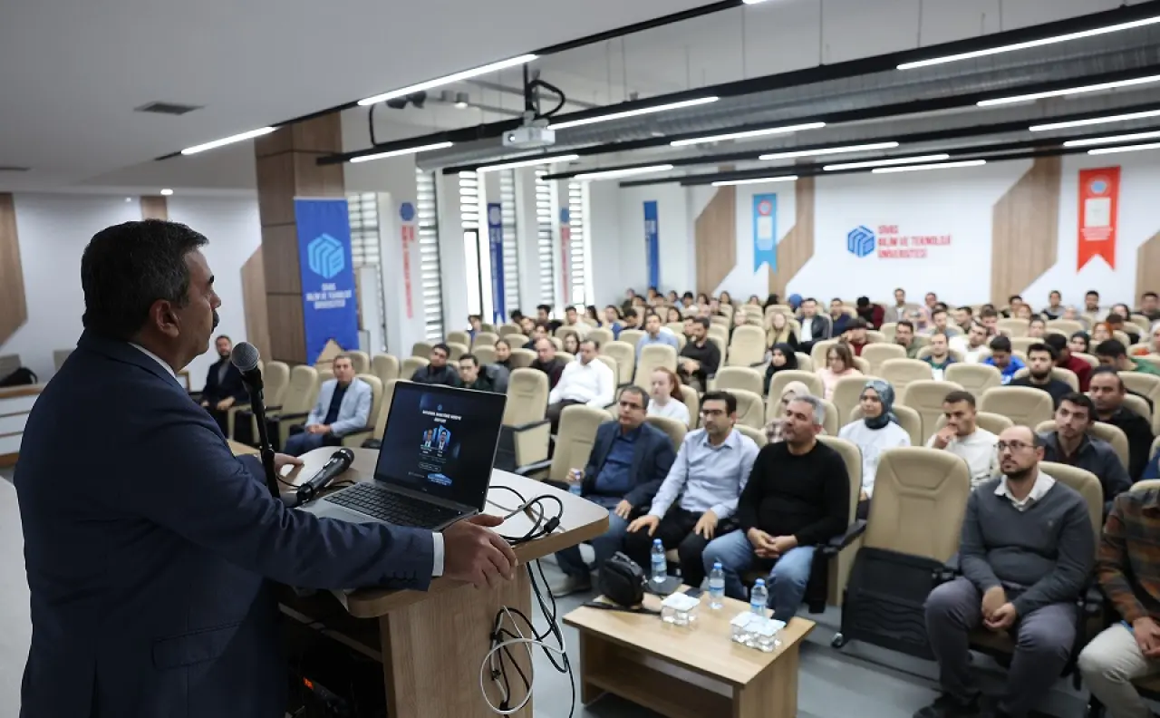Mühendislik ve Doğa Bilimleri Fakültesi ile Bilim ve Teknoloji Topluluğu iş birliğinde gerçekleştirilen etkinlikte, öğrenciler ve akademisyenler savunma sektörünün bugünü ve yarını hakkında değerli bilgiler edindi.