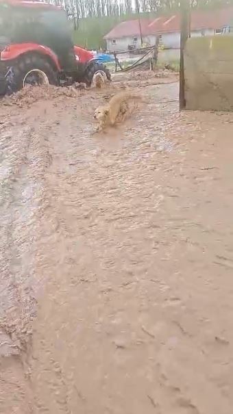 Sivas merkeze bağlı Yanalak köyünde etkili olan sağanak sonrası dere taşarken, sokaklar adeta nehre döndü.