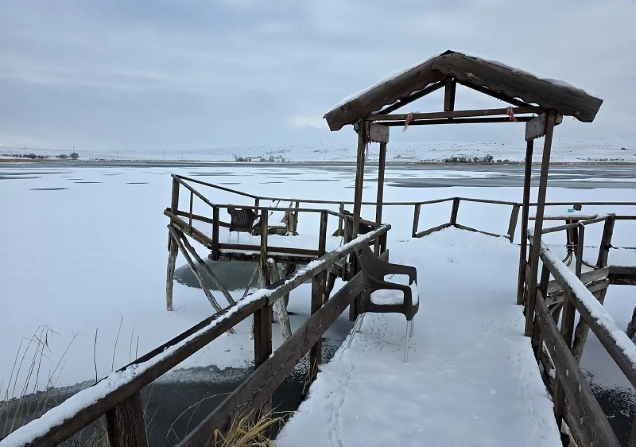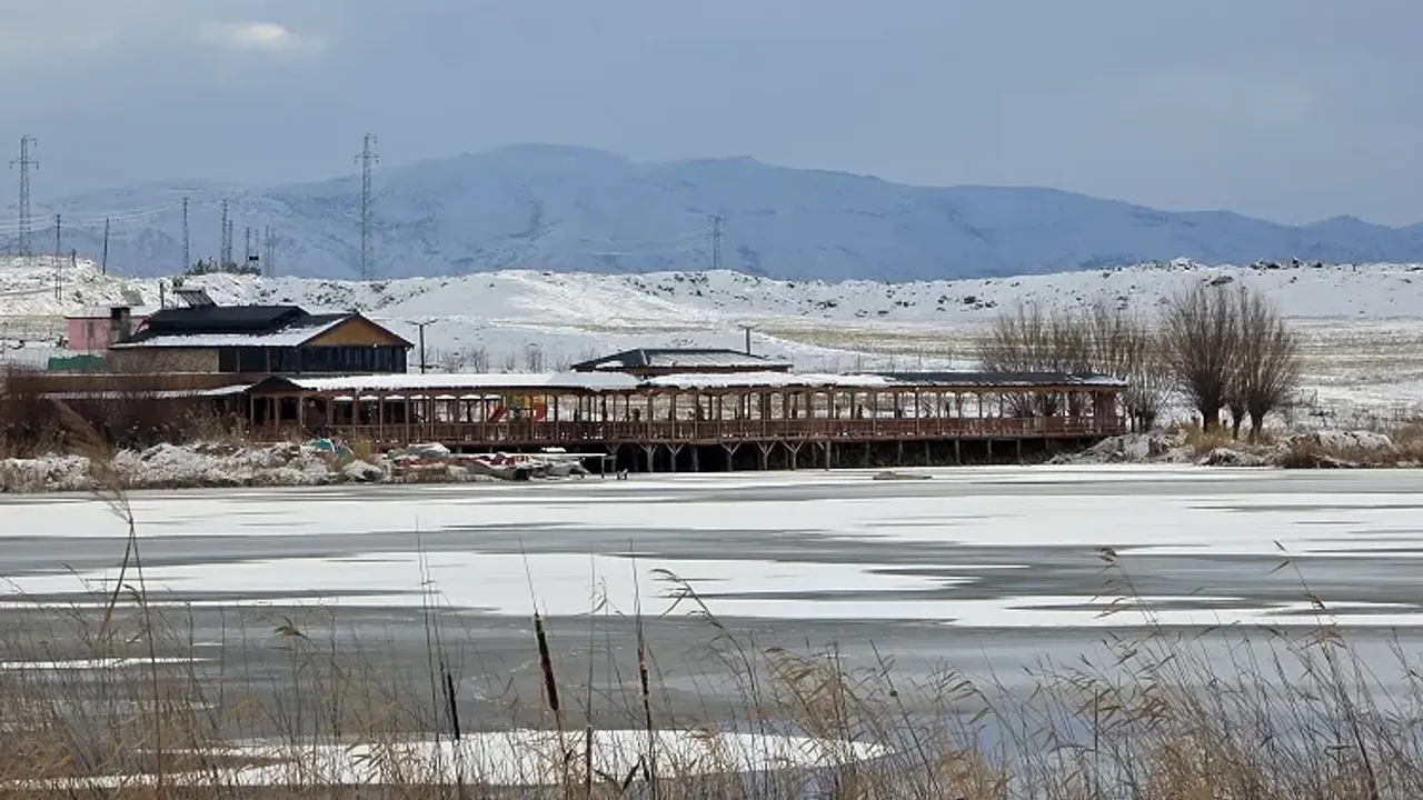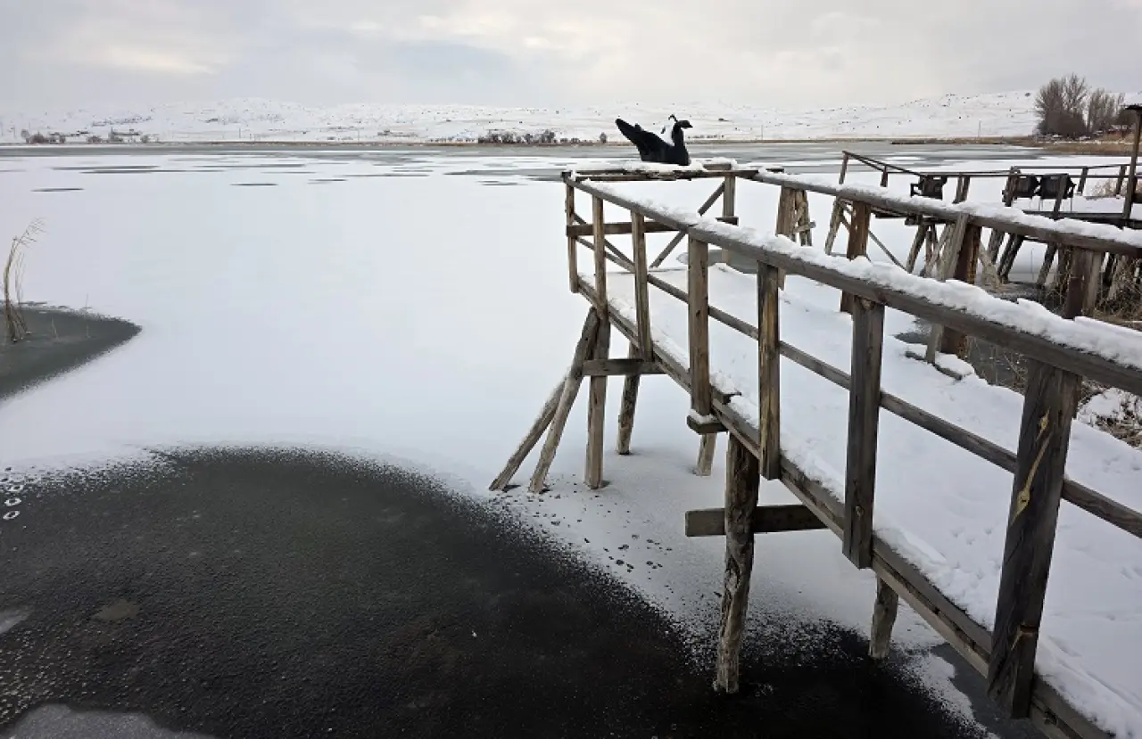 İlçede hava sıcaklıklarının sıfırın altına düşmesiyle birlikte göl yüzeyinin büyük bölümünde ince buz tabakaları oluşurken, doğanın zorlu şartlara karşı verdiği yaşam mücadelesi dikkat çekti. Sakarmeke kuşları, gölün donmayan bölgelerinde yiyecek arayarak hayatta kalmaya çalıştı. Ortaya çıkan manzara, hem kışın sert yüzünü hem de doğanın direncini gözler önüne serdi.