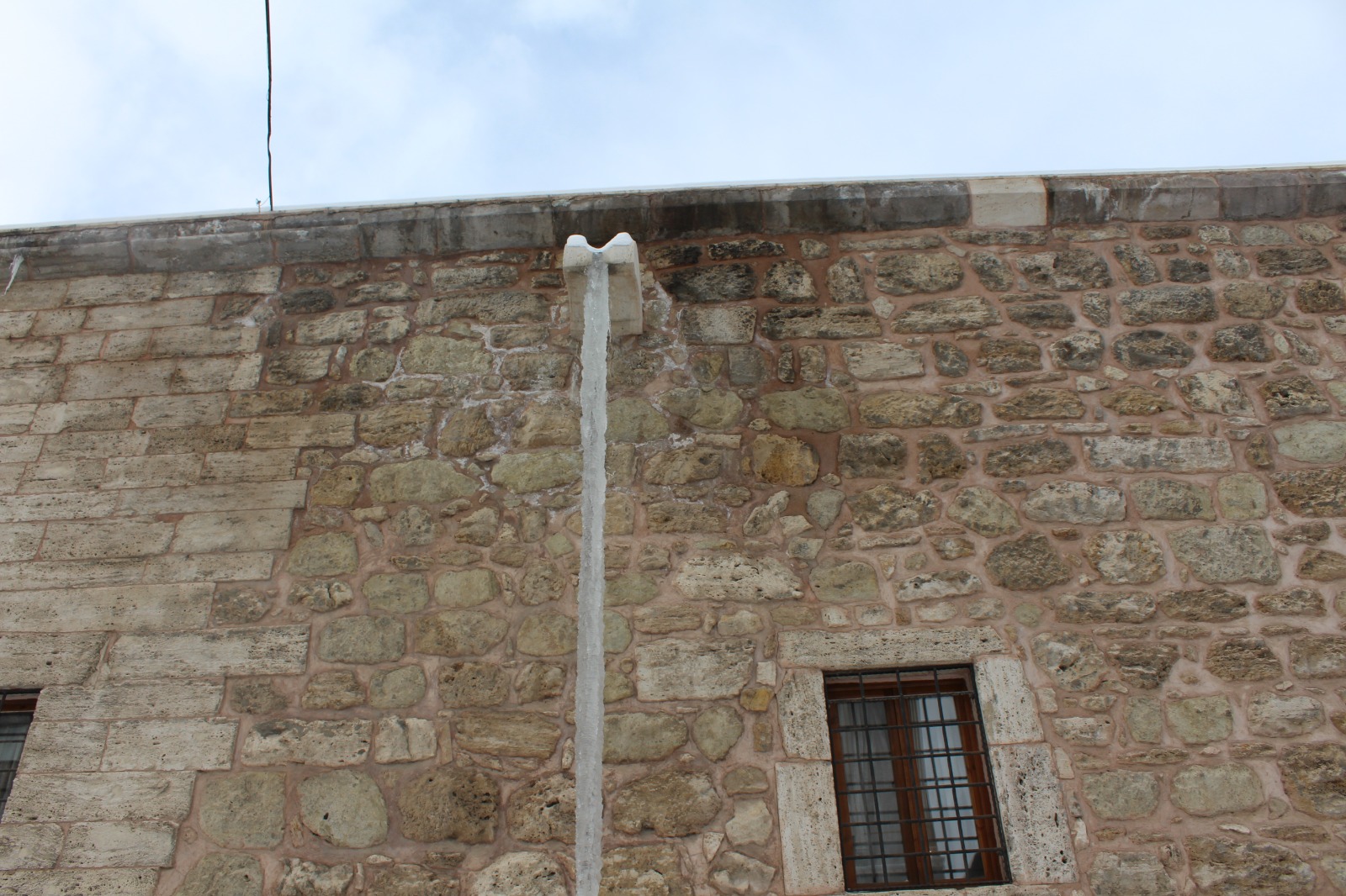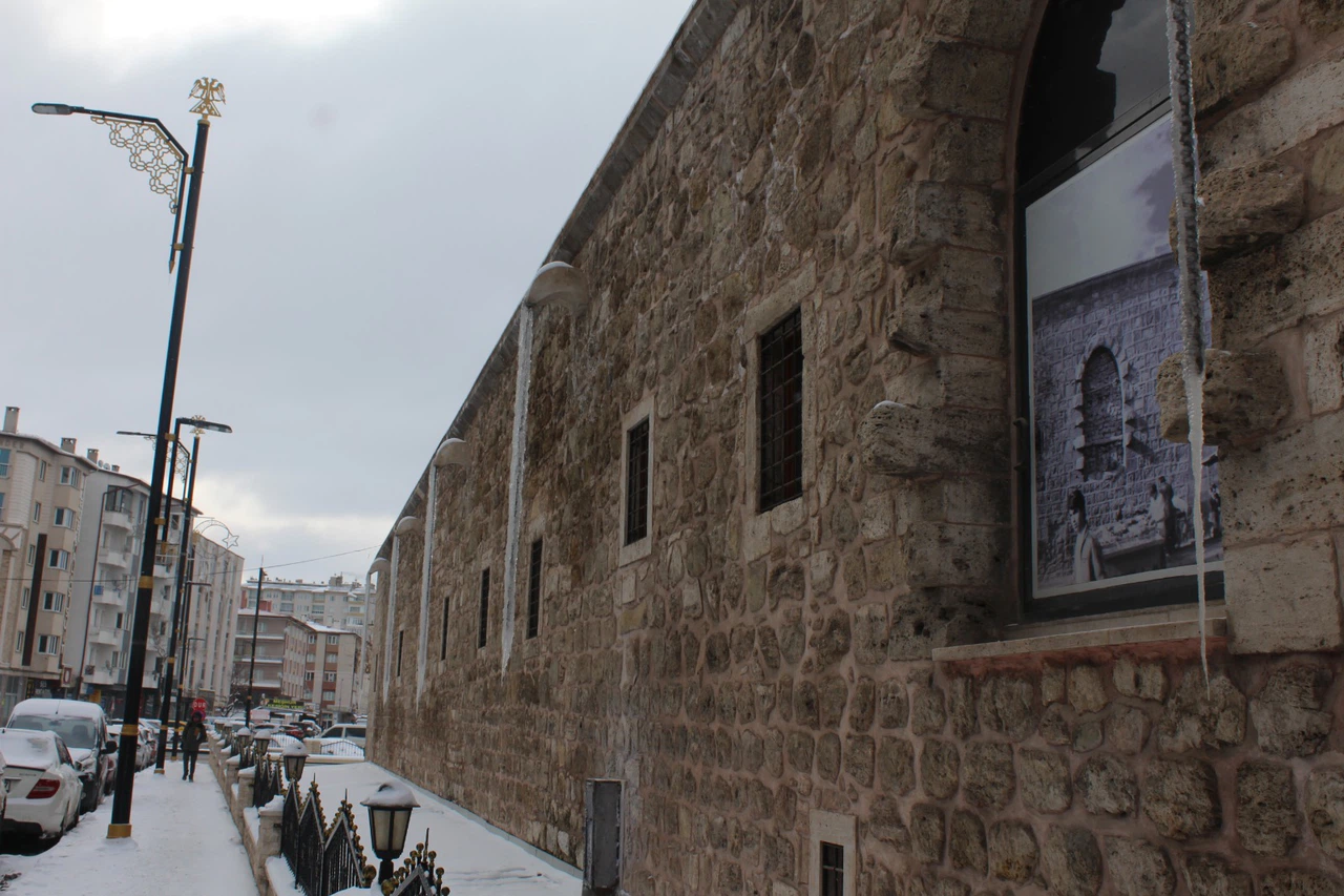 Sivas’ta etkisini sürdüren soğuk hava dalgası, kent genelinde buzlanmaya neden oldu. Gece sıcaklıklarının sıfırın altına düşmesiyle birlikte, Sivas'ın tarihi yapılarından olan Behrampaşa Hanı çatısındaki su tahliye oluğunda uzun bir buz sarkıtı meydana geldi.