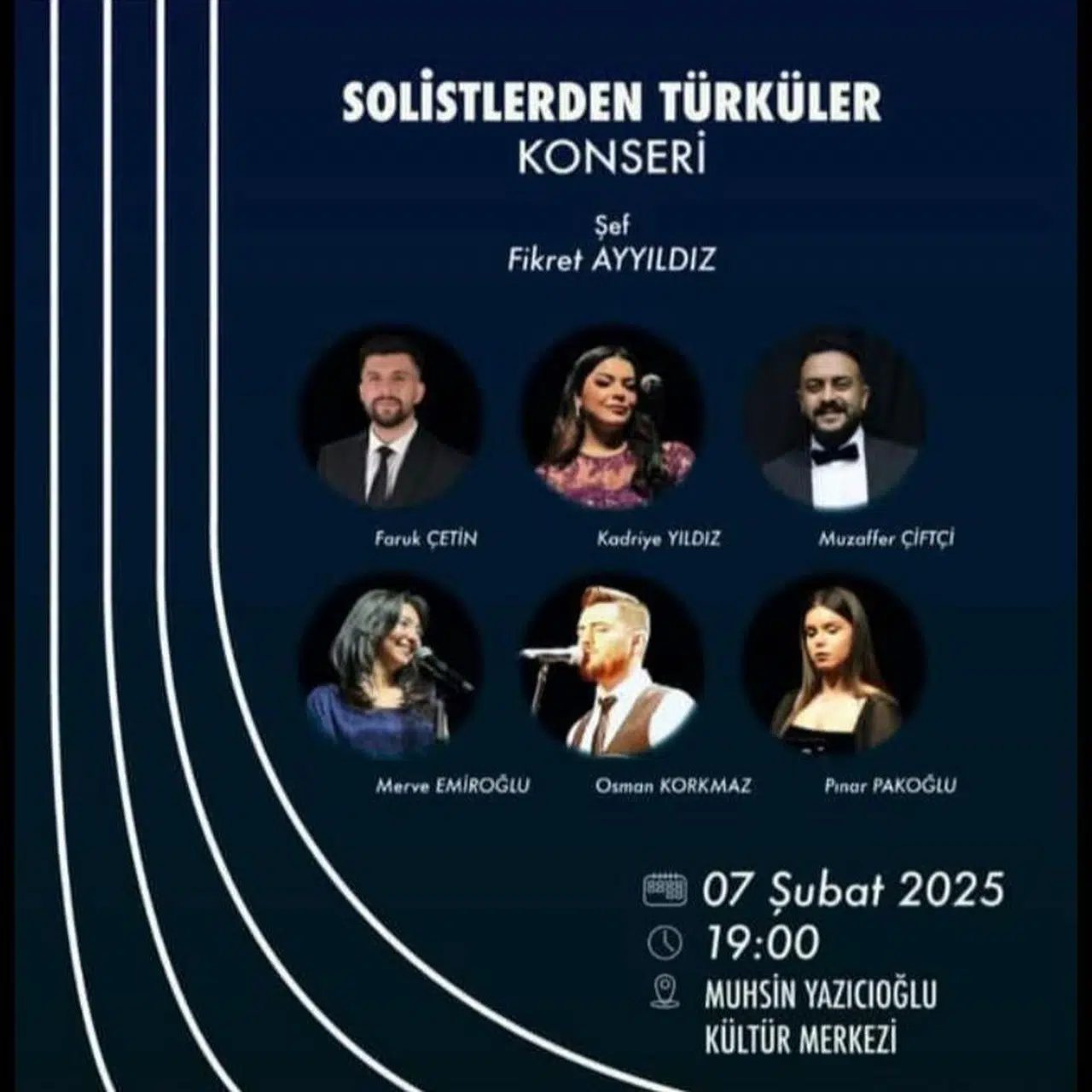 Konserde, Türk halk müziğinin sevilen isimlerinden oluşan bir grup solist sahne alacak. Faruk Çetin, Kadriye Yıldız, Muzaffer Çiftçi, Merve Emiroğlu, Osman Korkmaz ve Pınar Pakoğlu, birbirinden güzel türkülerle dinleyicilere keyifli bir akşam yaşatacak.