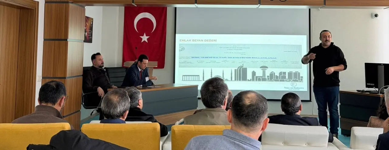 Sivas Emlakçılar Birliği ile Tapu ve Kadastro 20. Bölge Müdürlüğü iş birliğinde, il genelinde faaliyet gösteren emlakçılara yönelik “Web Tapu Bilgilendirme Toplantısı” düzenlendi. Taşınmaz sektöründe dijitalleşmenin önemli ayaklarından biri olan Web Tapu uygulamasının ele alındığı toplantı, sektör temsilcilerinden yoğun ilgi gördü.