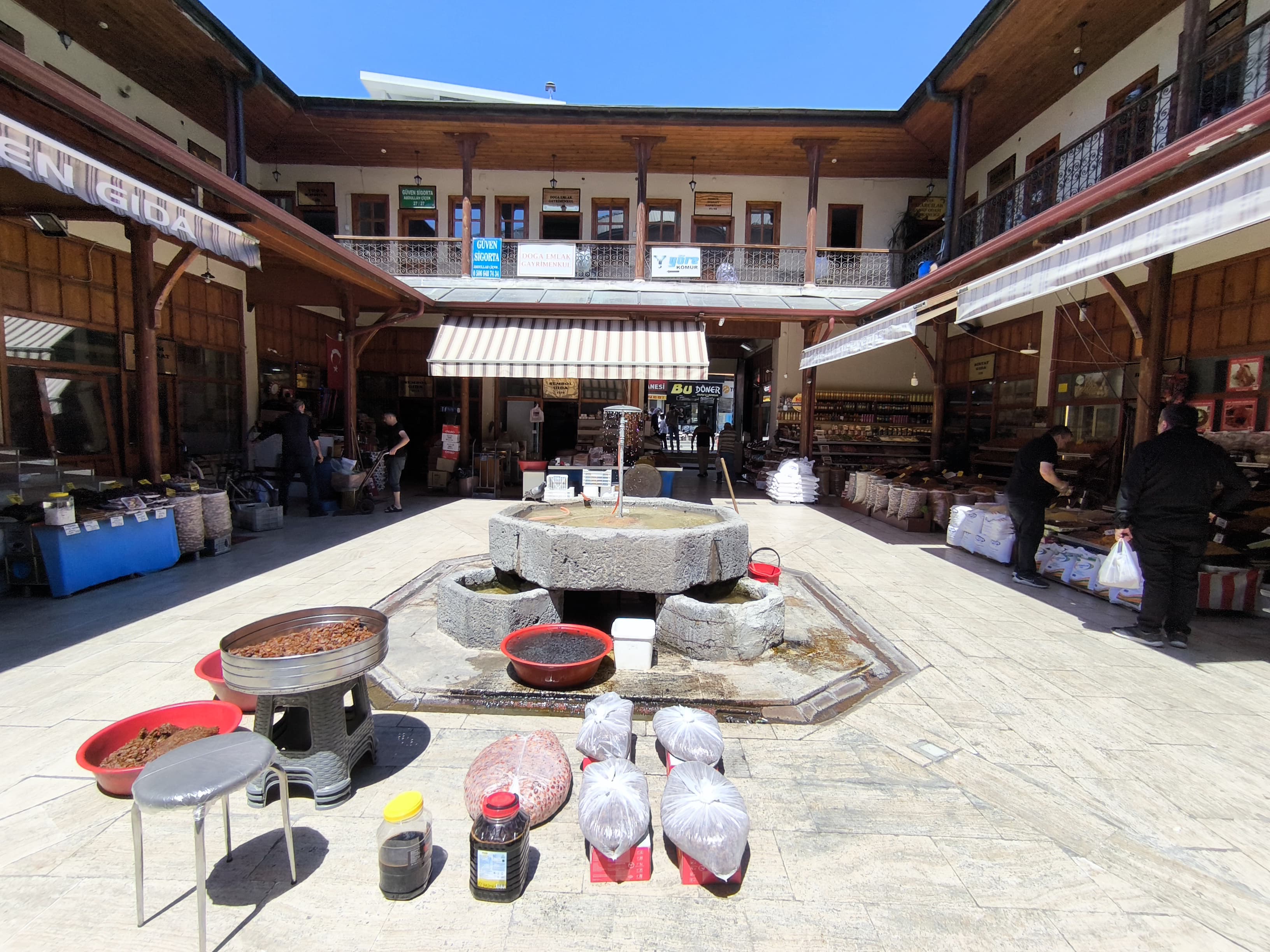 Yüzyıllık taş duvarları, serin avlusu ve iki katlı mimarisiyle tarihe tanıklık eden han, özellikle doğal ürünlerin satıldığı dükkânlarıyla ilgi görüyor. Kurutulmuş sebzeler, baharatlar, doğal bitki çayları, bal, pekmez ve köy eriştesi gibi ürünler, hem nostaljik hem sağlıklı tercihler arayanların ilgisini çekiyor.