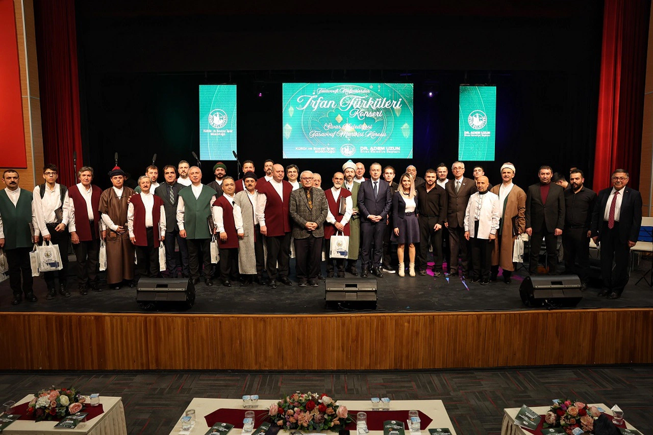 Sivas Belediyesi Kültür ve Sosyal İşler Müdürlüğü bünyesindeki Tasavvuf Mûsikîsi Korosu tarafından "Tasavvufî Nağmelerden İrfan Türküleri" adlı konser, Fidan Yazıcıoğlu Kültür Merkezi'nde gerçekleştirildi. Konsere, Sivas Belediye Başkanı Adem Uzun, il protokolü üyeleri, sivil toplum kuruluşu temsilcileri ve çok sayıda vatandaş katılım gösterdi.