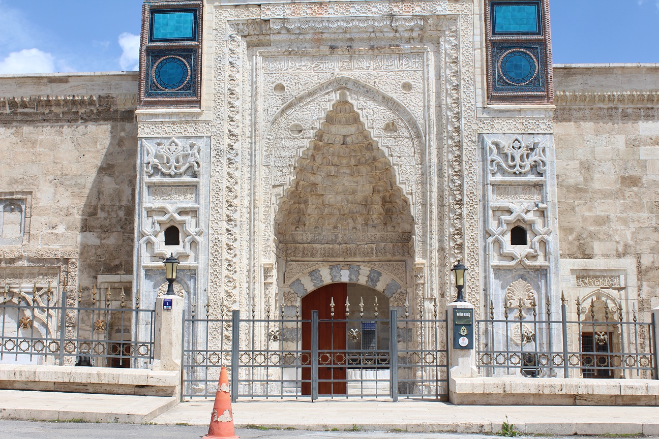 Gök Medrese'nin daha ilk bakışta insanı etkisi altına alan mermer taş kapısı, ustalıkla işlenmiş detaylarıyla ışık ve gölge oyunlarını ziyaretçilere yaşatan zengin bir görünüme sahip. Bu kapıdan içeri adım attığınızda, kendinizi Selçuklu Dönemi'nin mistik atmosferinde buluyorsunuz. Açık avlulu, dört eyvanlı ve iki katlı planıyla dikkat çeken yapı, mimari zarafetiyle ön plana çıkıyor.