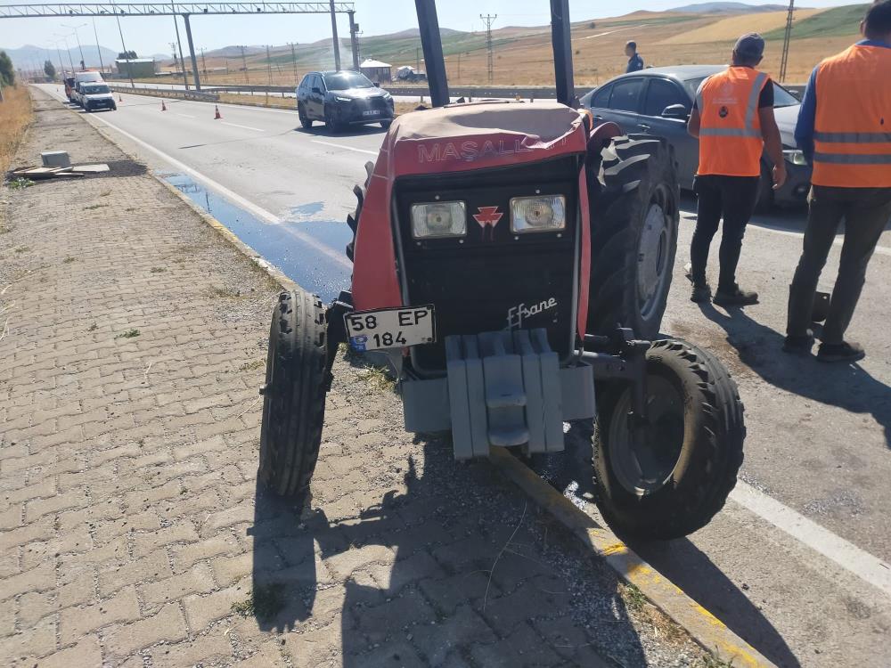 İmranlı'dan Sivas istikametine seyir halinde olan C.T. idaresindeki 35 AGA 546 plakalı otomobil ile aynı istikamette olan N.K. idaresindeki 58 EP 184 plakalı traktör çarpıştı. Kazayı görenlerin ihbarı üzerine olay yerine polis ve sağlık ekipleri sevk edildi. Kazada sürücüler ile araçta bulunan yolcu olarak bulunan S.T. yaralandı. Sağlık ekiplerinin ilk müdahalesi ardından yaralılar İmranlı Devlet Hastanesine kaldırıldı. Kaza ile ilgili inceleme başlatıldı.