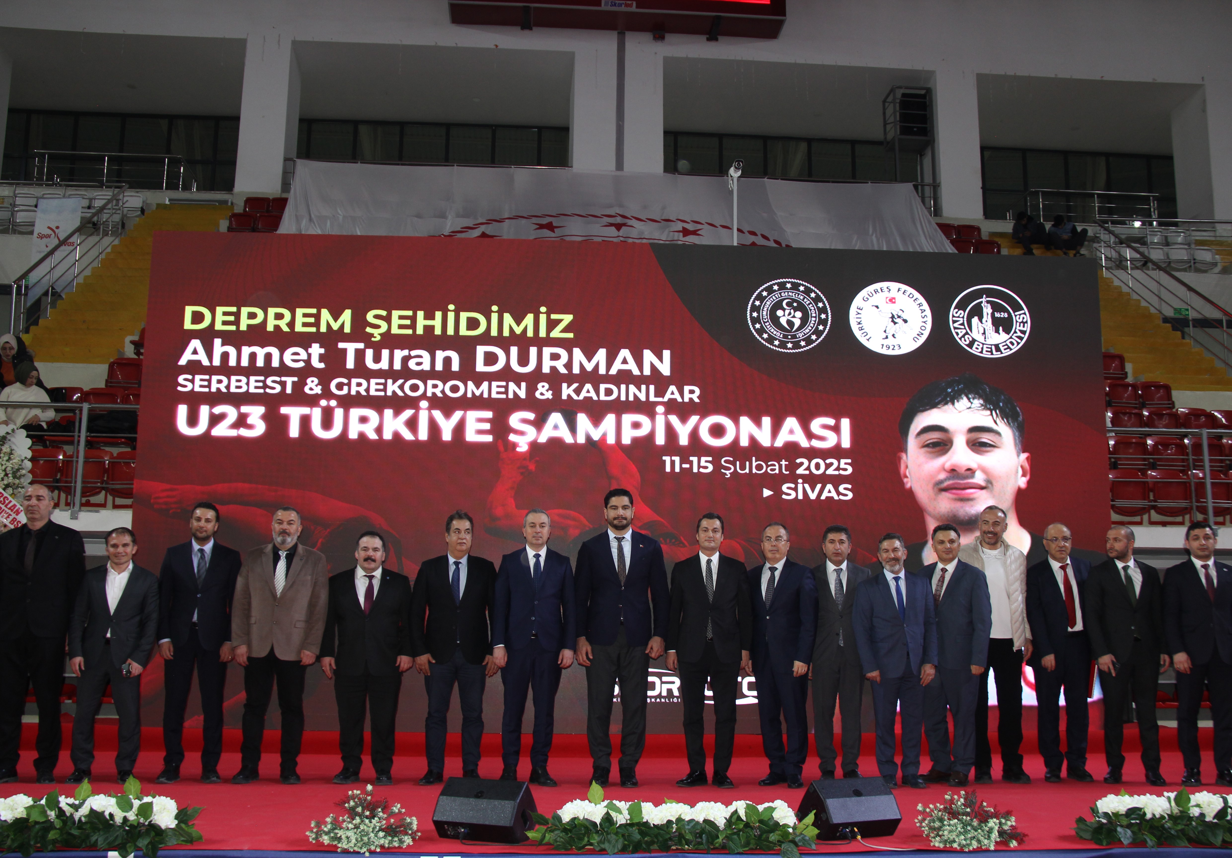 Sivas’ta başlayan ve 'Deprem Şehidi Ahmet Turan Durman' adına düzenlenen U23 Serbest Türkiye Güreş Şampiyonası, tüm hızıyla devam ederken, şampiyonanın seremonisi Sivas Vali Vekili Şakir Öner Öztürk, Türkiye Güreş Federasyonu Başkanı Taha Akgül ve il protokolünün katılımıyla yapıldı.