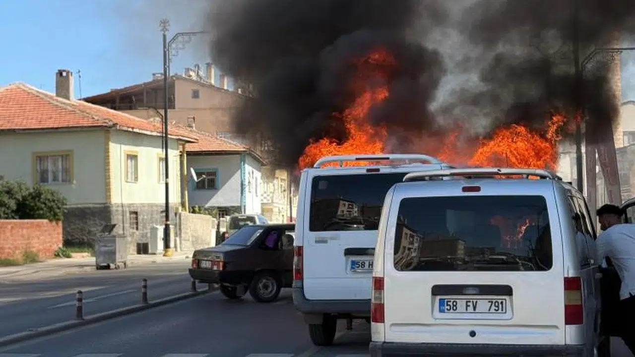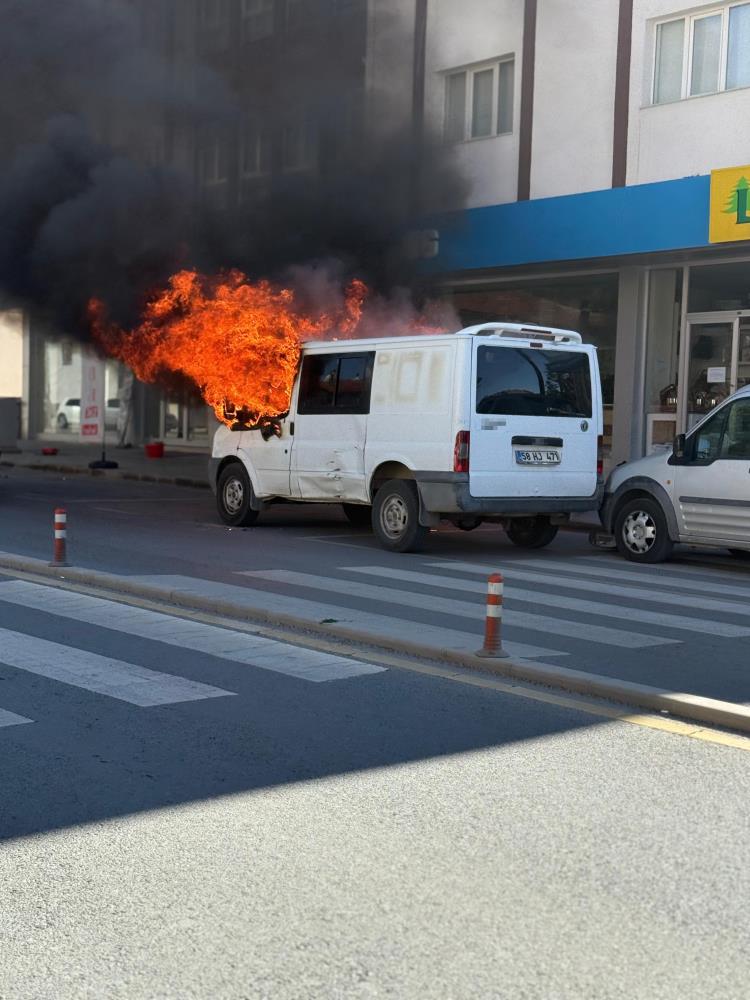 Sivas'ta park halindeki minibüs alev alev yandı.