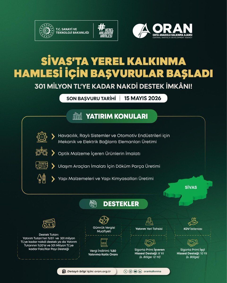 Yetkililer, başvuru süresinin yaklaşmasıyla birlikte yoğunluk yaşanabileceğine dikkat çekerek yatırımcıların süreci son günlere bırakmaması gerektiğini vurguluyor. Sivas’ta sanayi ve üretim alanında yeni bir sayfa açmayı hedefleyen program, doğru projelerle buluştuğunda bölge ekonomisinde önemli bir dönüşümün kapısını aralayabilir.