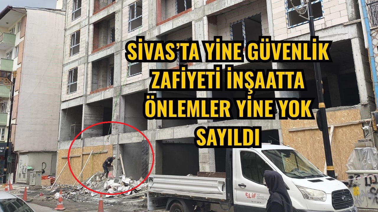 Sivas’ta iş güvenliği konusunda bir skandal daha yaşanıyor. Atatürk Caddesi Kayıcık Sokak üzerinde devam eden bir inşaatta, temel güvenlik önlemlerinin alınmadığı gözlemlendi. Yol kenarında bulunan inşaatta çalışan işçilerin kafasında baret bulunmazken, herhangi bir güvenlik filesi de yerleştirilmedi.