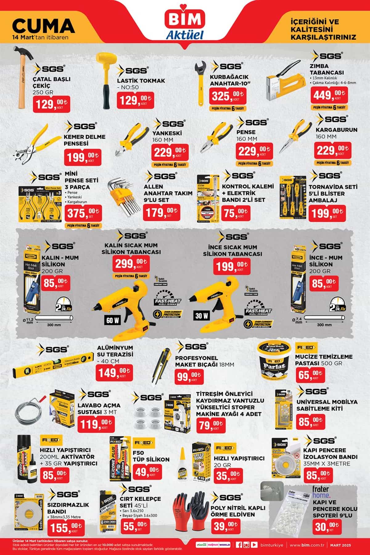 BİM, bu hafta tadilat ve tamirat ürünlerinde de büyük kampanyalar sunuyor. SGS Tilki Kuyruğu Testere 3.790 TL, SGS Polisaj Makinesi 3.190 TL, SGS Sunta Kesme Makinesi 1.990 TL fiyatlarıyla BİM marketlerinde yerini alacak.