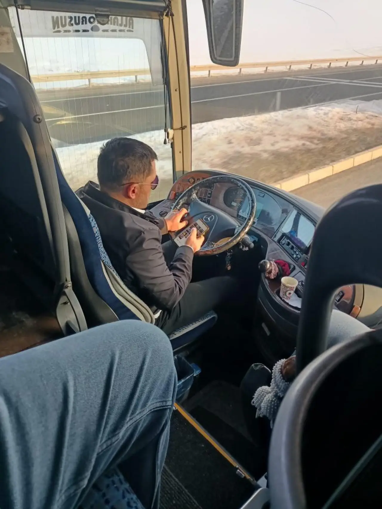 Ortaya çıkan görüntülerde, onlarca yolcunun canını emanet ettiği otobüs şoförünün, seyir halindeyken uzun süre cep telefonu ekranına kilitlendiği görülüyor. Yalnızca telefonla ilgilenmekle kalmayan sürücü, bir yandan direksiyonu ihmal ederek çayını yudumlarken, diğer yandan telefon trafiğini sürdürmeye devam etti. Şoförün yola odaklanmak yerine ekranla ilgilendiği o anlar, otobüsteki bir yolcunun cep telefonu kamerasına saniye saniye yansıdı.